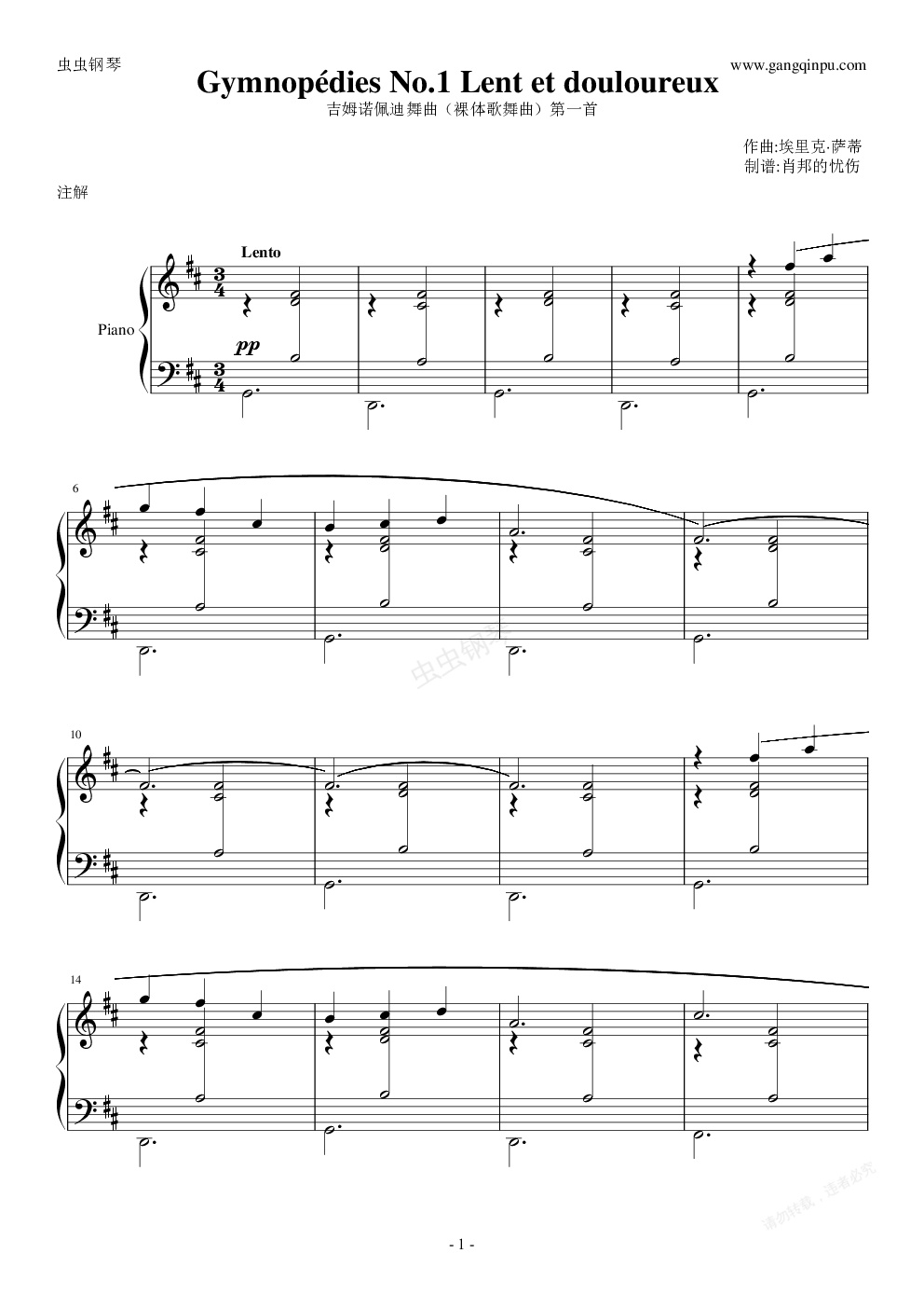 钢琴谱:吉姆诺佩迪舞曲No1(裸体歌舞)萨蒂