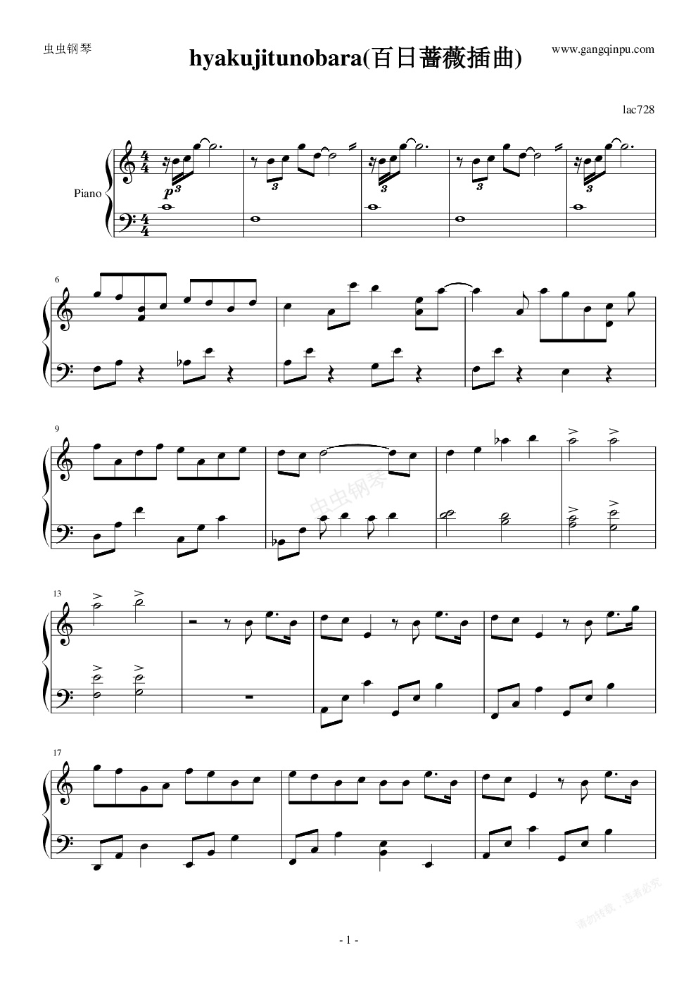 钢琴谱:hyakujitunobara(百日蔷薇插曲)