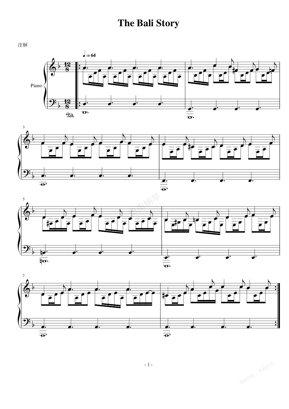 钢琴谱:The Bali Story - 巴厘岛的故事 OST