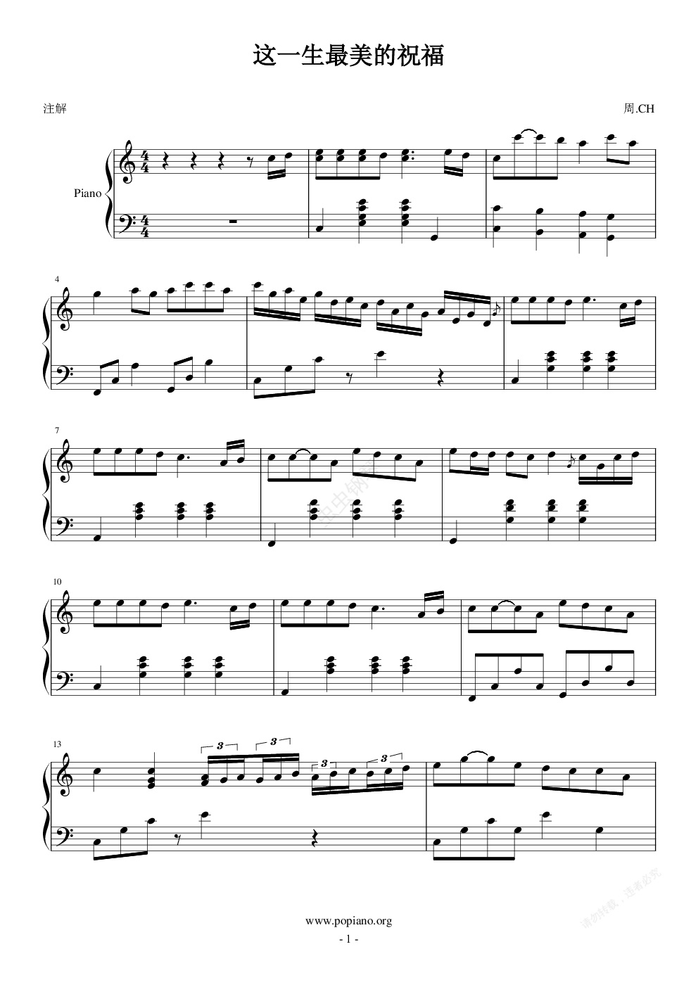 钢琴谱:这一生最美的祝福