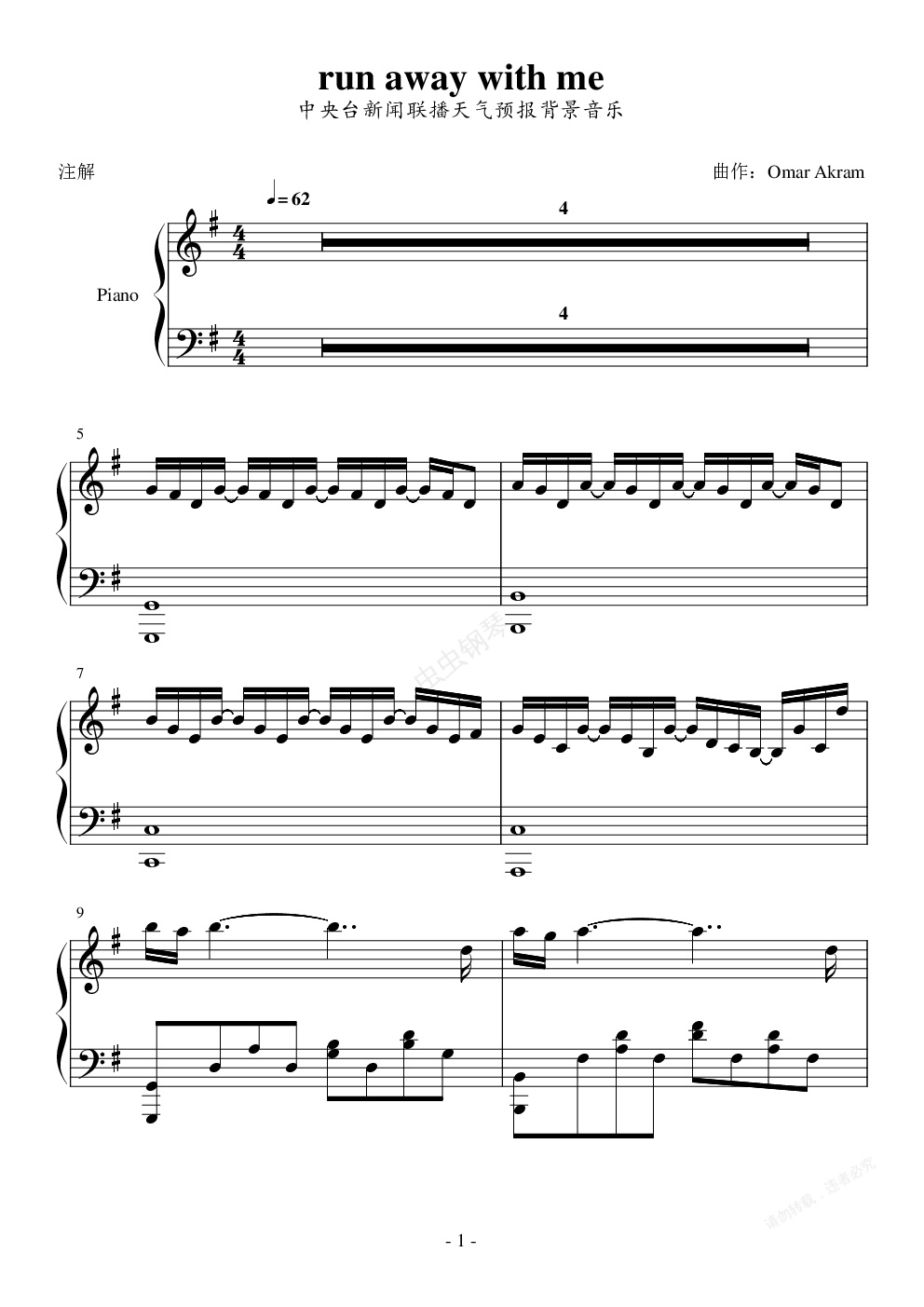 钢琴谱:run away with me