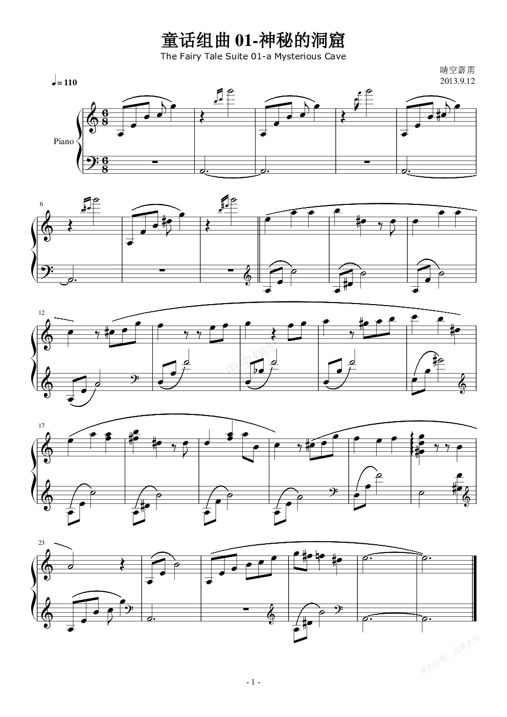 钢琴谱:童话组曲 01 a Mysterious Cave