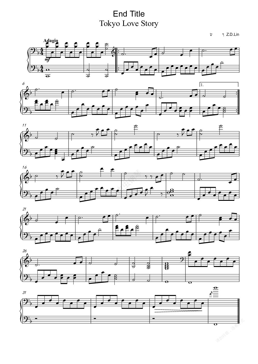 钢琴谱:End Title 东京爱情故事(ZD20重制版)
