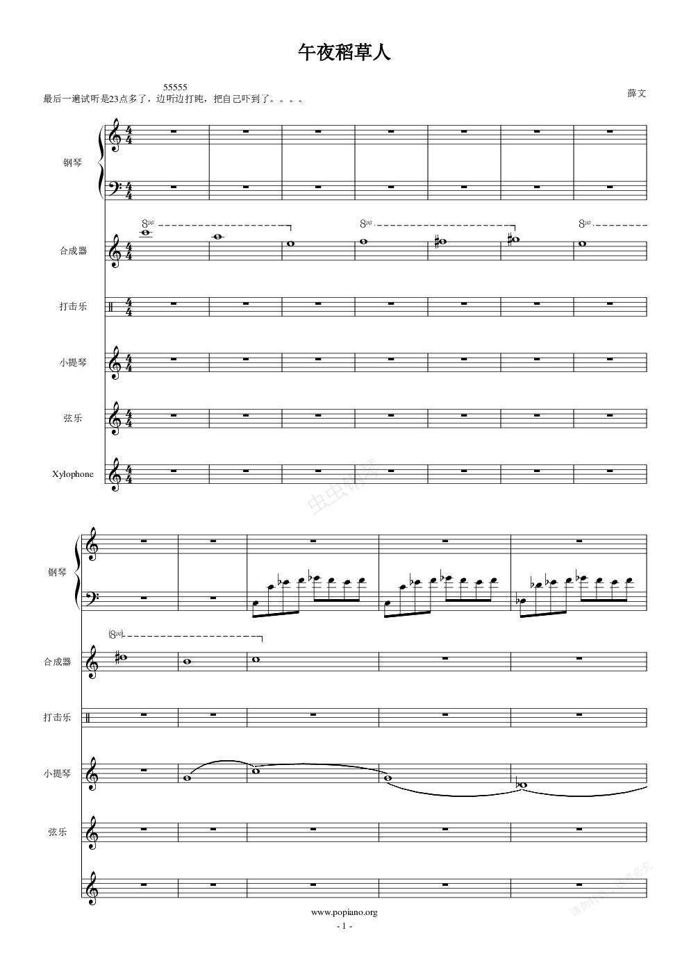 钢琴谱:午夜稻草人