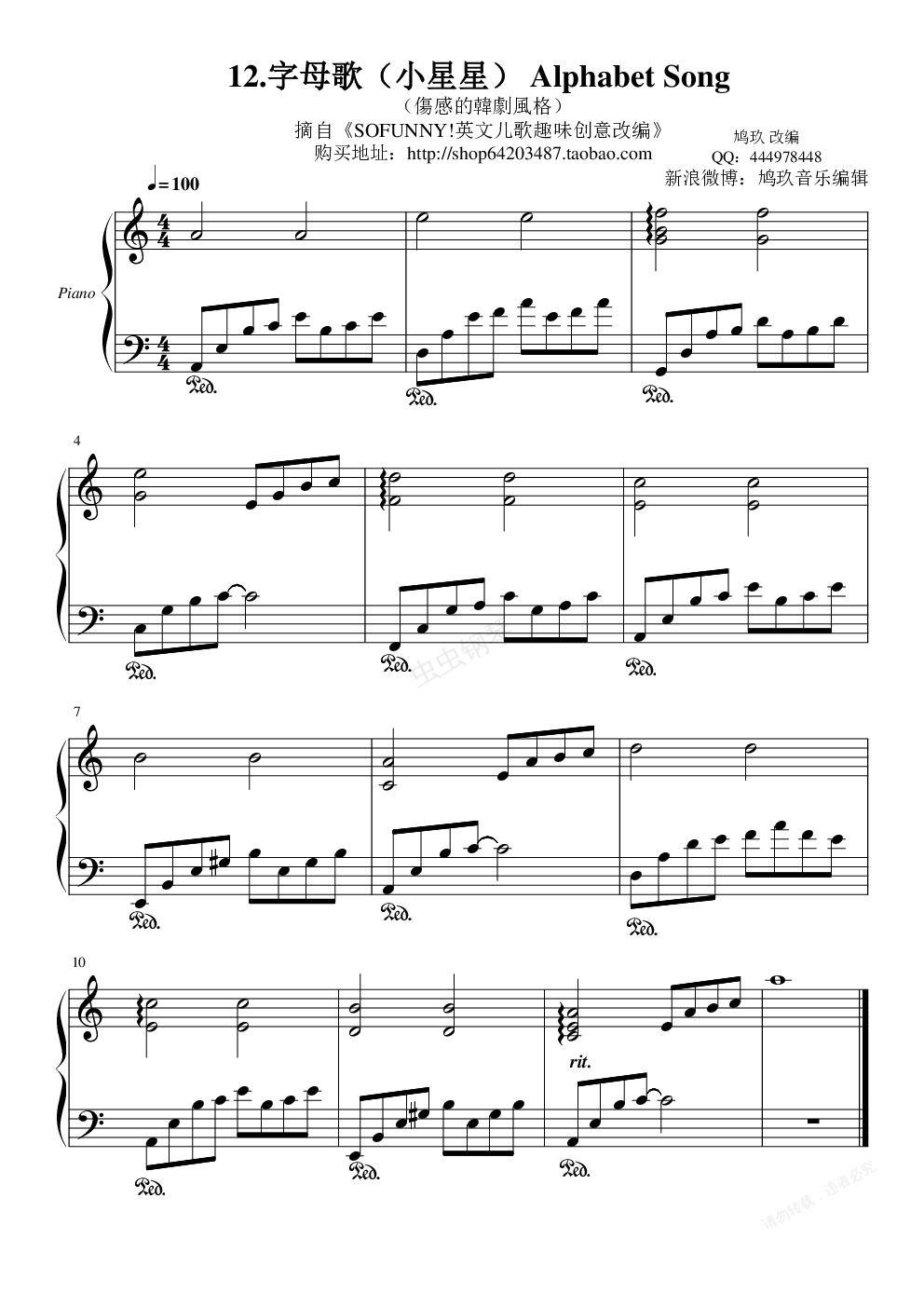 小星星(字母歌)变奏1(伤感的韩剧风格)