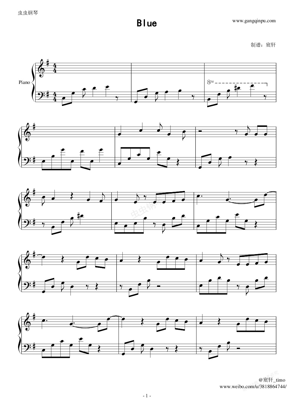 钢琴谱:Blue 完整版