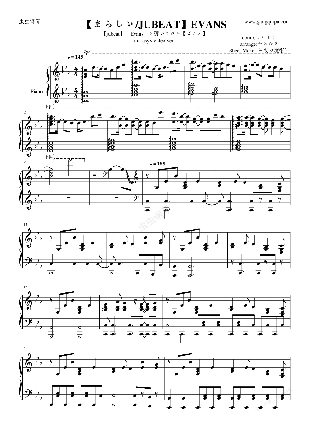 钢琴谱:【触手猴】【JUBEAT】Evans