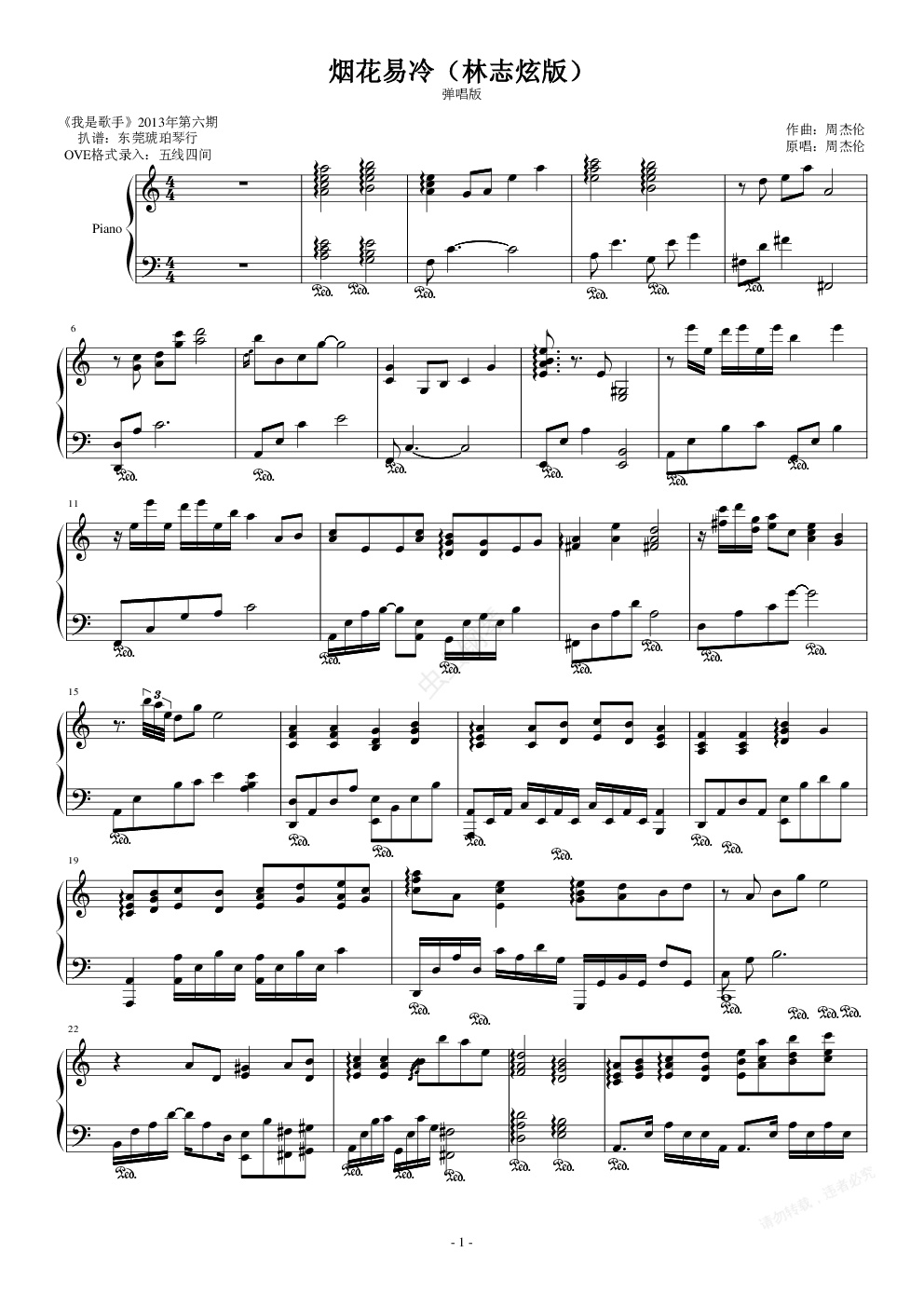 钢琴谱:烟花易冷