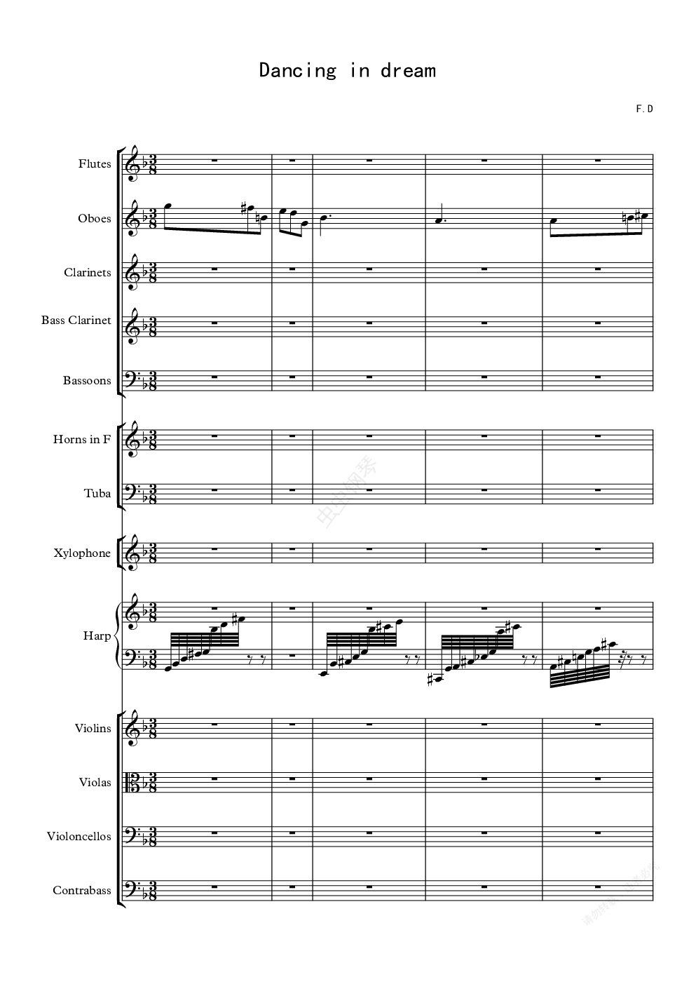 算是第一次对管弦乐比较全面的接触了,虽然配器什么的狗屁不通,但我仍然坚持音乐的根本还是感觉,剩下的形式上的问题会一步一步解决。这首曲子只写了一半,情绪上受了点影响,回过神来已经完全接不下去了,可能这就是业余的问题吧,没办法了。有问题直接指出,谢了!