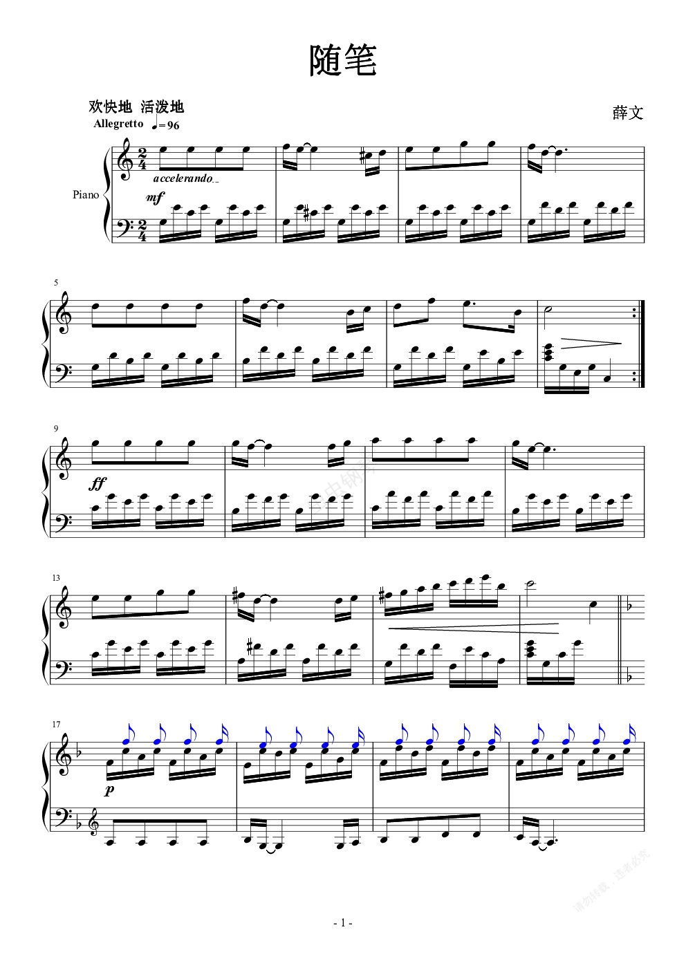 钢琴谱:随笔