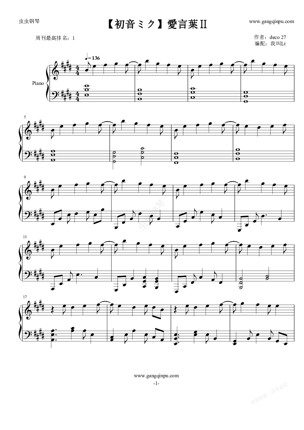 钢琴谱:【初音ミク】愛言葉Ⅱ
