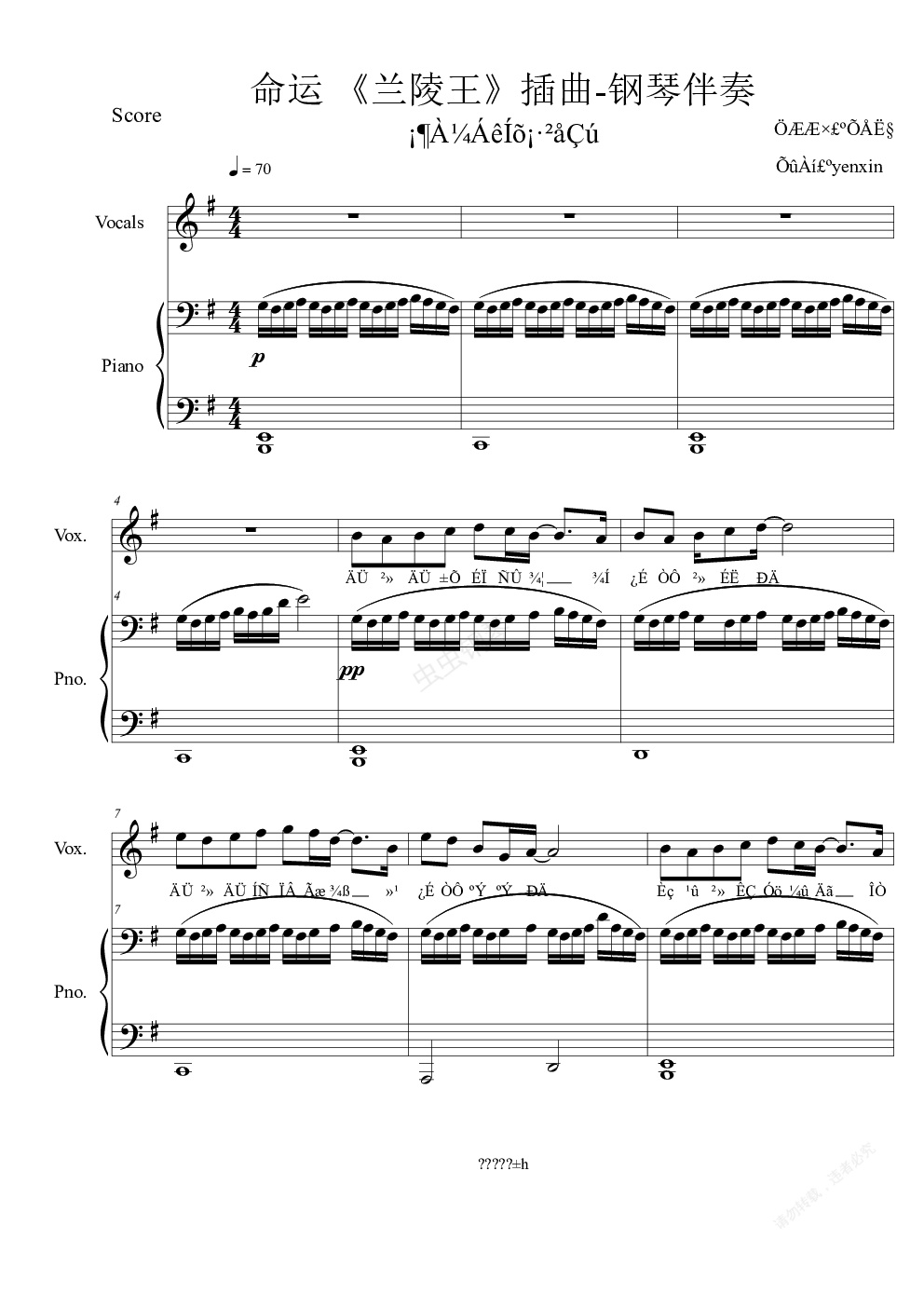钢琴谱:命运 《兰陵王》插曲-钢琴伴奏