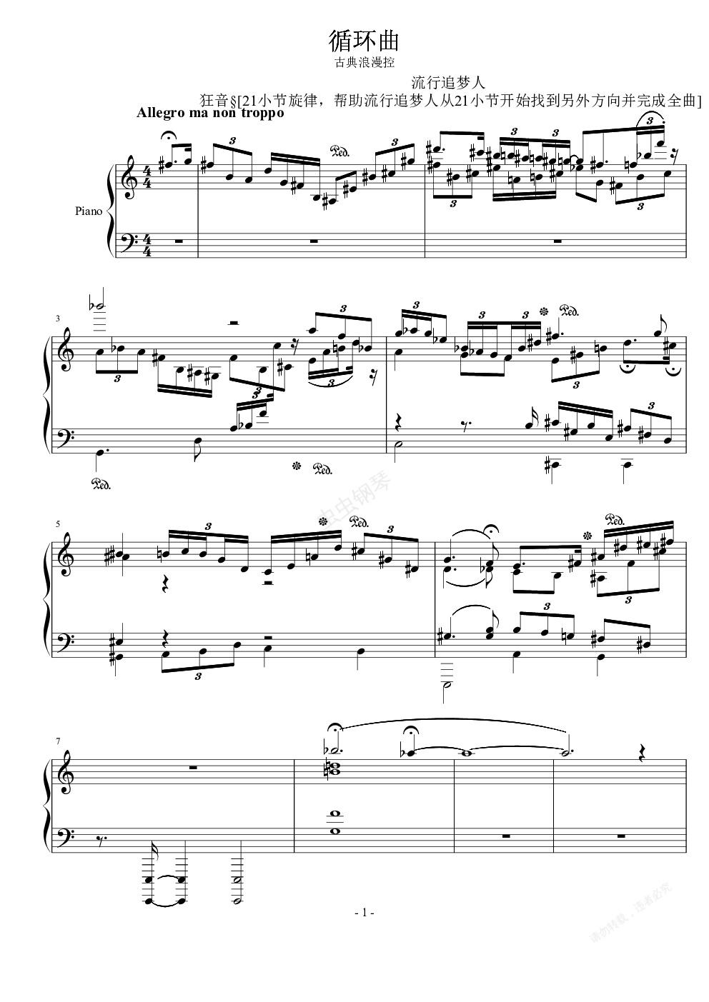 钢琴谱:循环曲 古典浪漫控 感谢狂音§