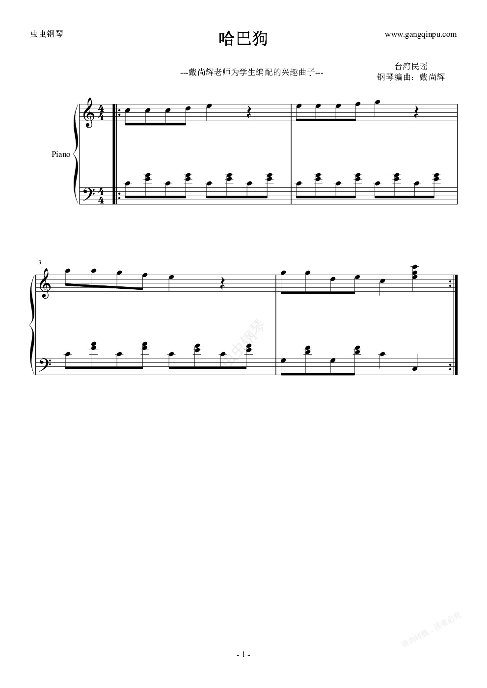 钢琴谱:哈巴狗 幼儿最喜欢的钢琴曲