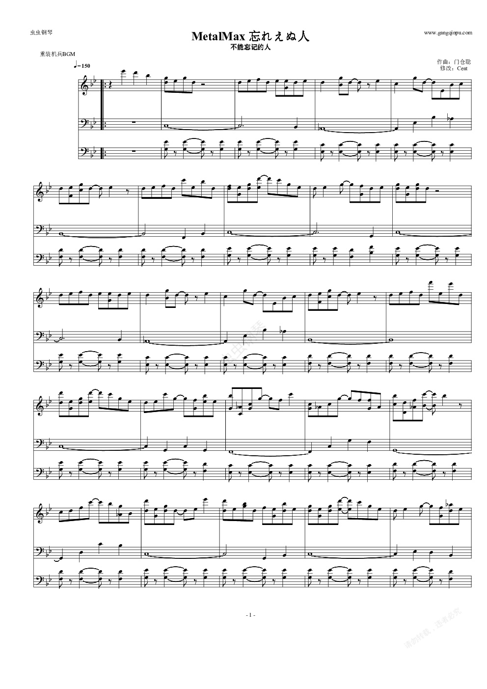 钢琴谱:重装机兵BGM忘れえぬ人《不能忘记的人》