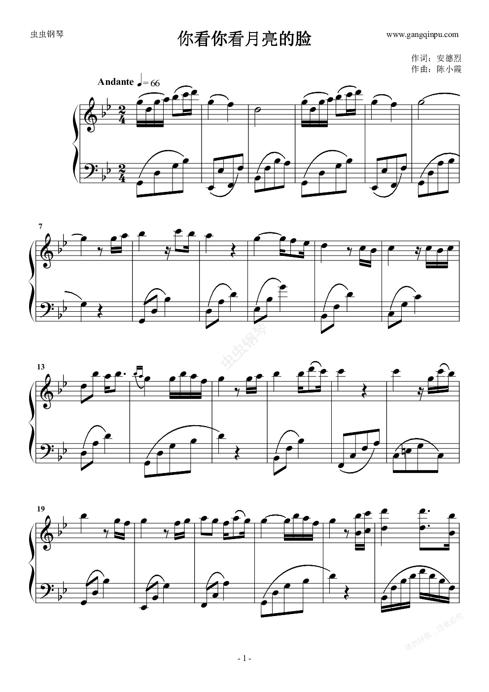 钢琴谱:孟庭苇 - 你看你看月亮的脸