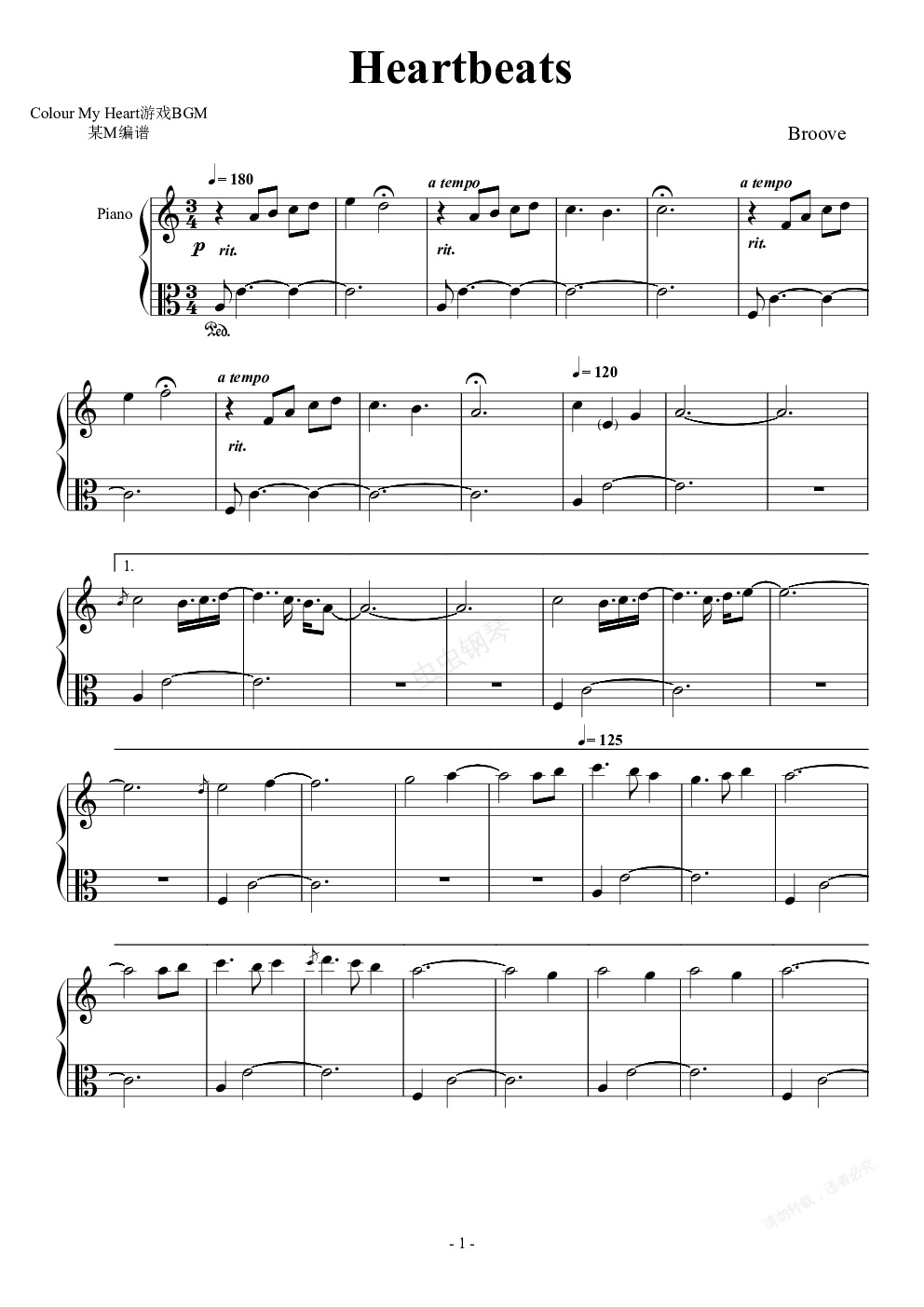 钢琴谱:Heartbeats