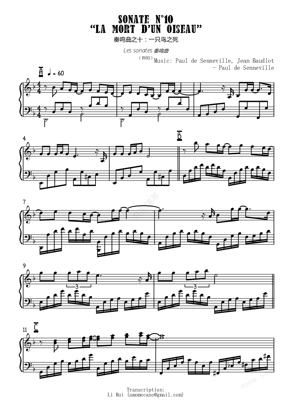 钢琴谱:一只鸟之死(奏鸣曲之十)-克莱德曼