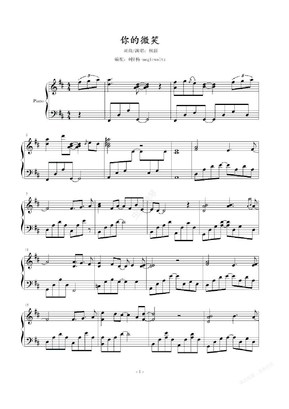 钢琴谱:你的微笑-中国好声音