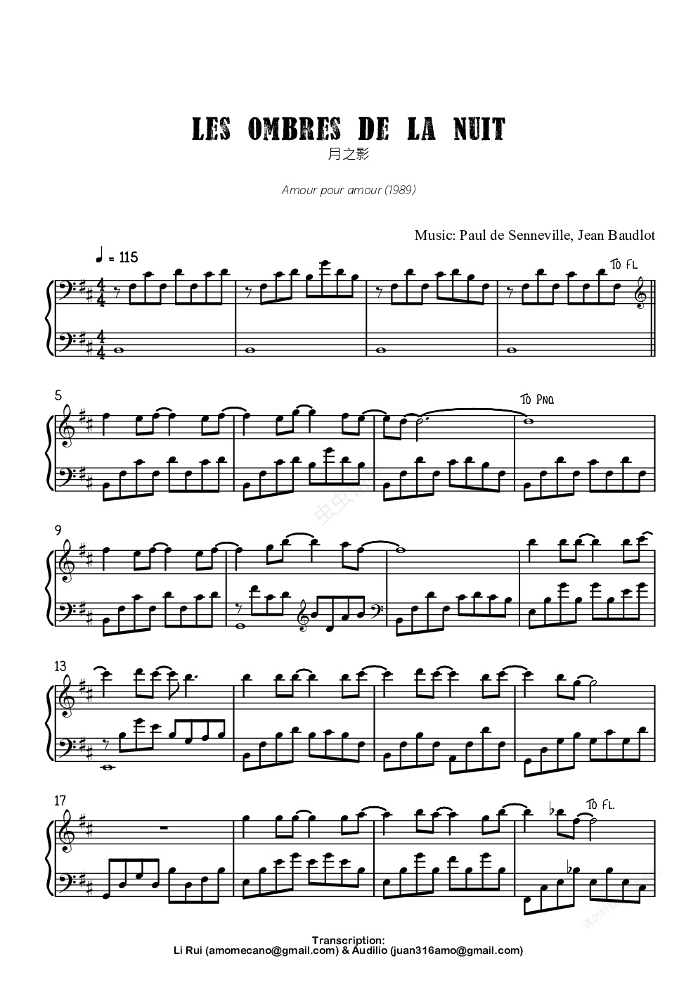 钢琴谱:月之影-克莱德曼与斯坦伯格