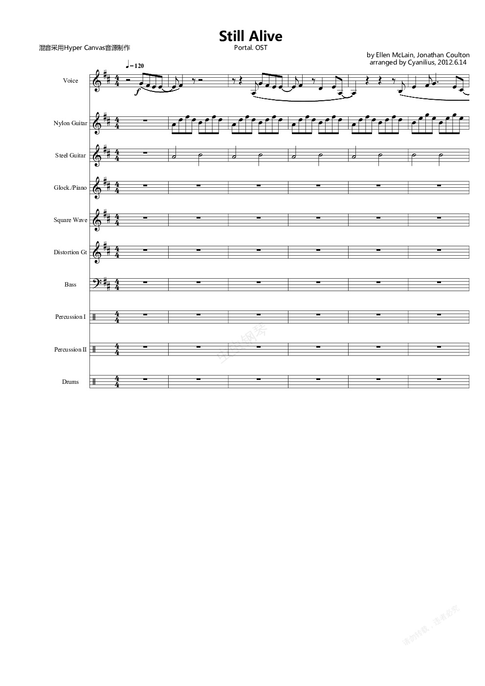 钢琴谱:传送门 结束曲 still alive 总谱