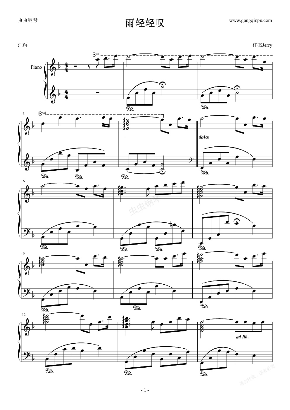 钢琴谱:雨轻轻叹
