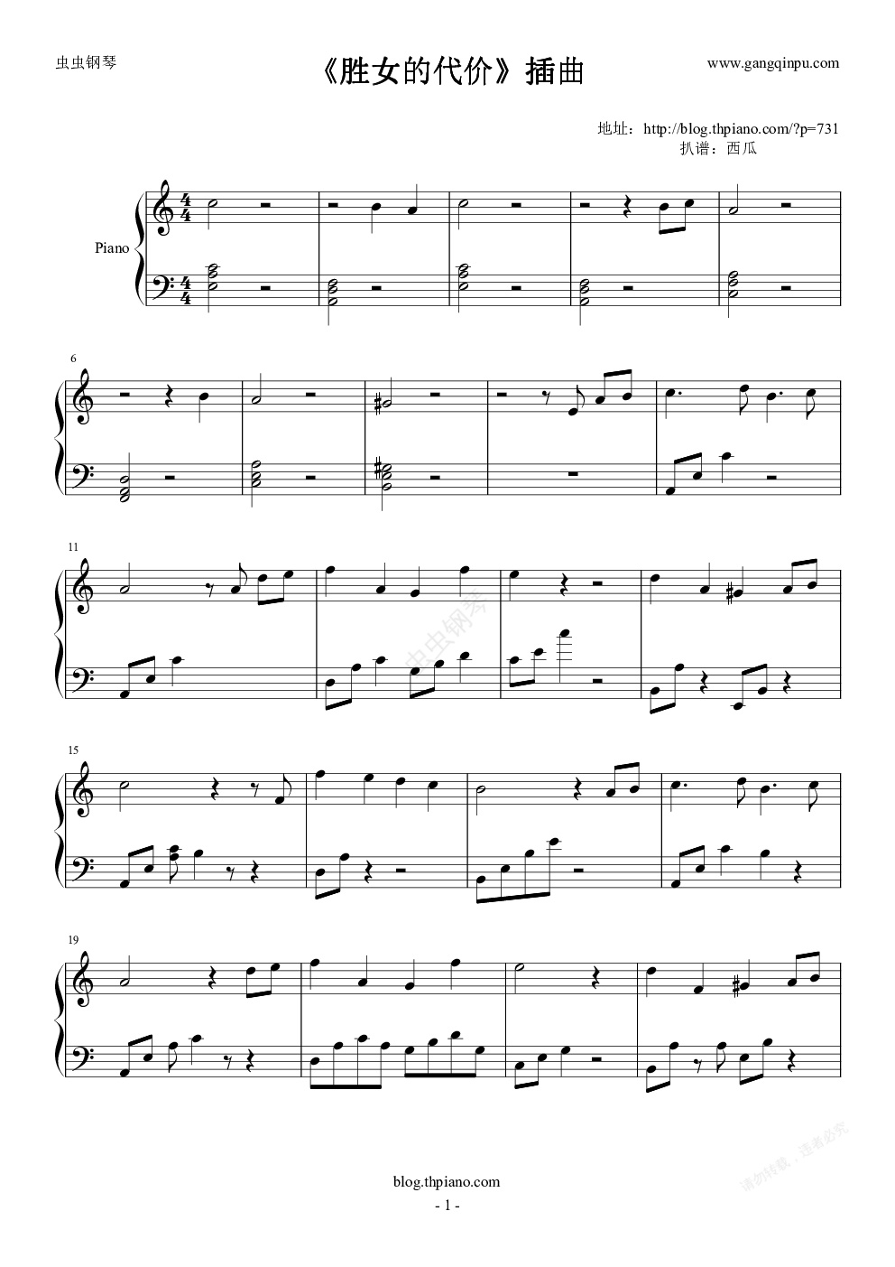 钢琴谱:《胜女的代价》插曲