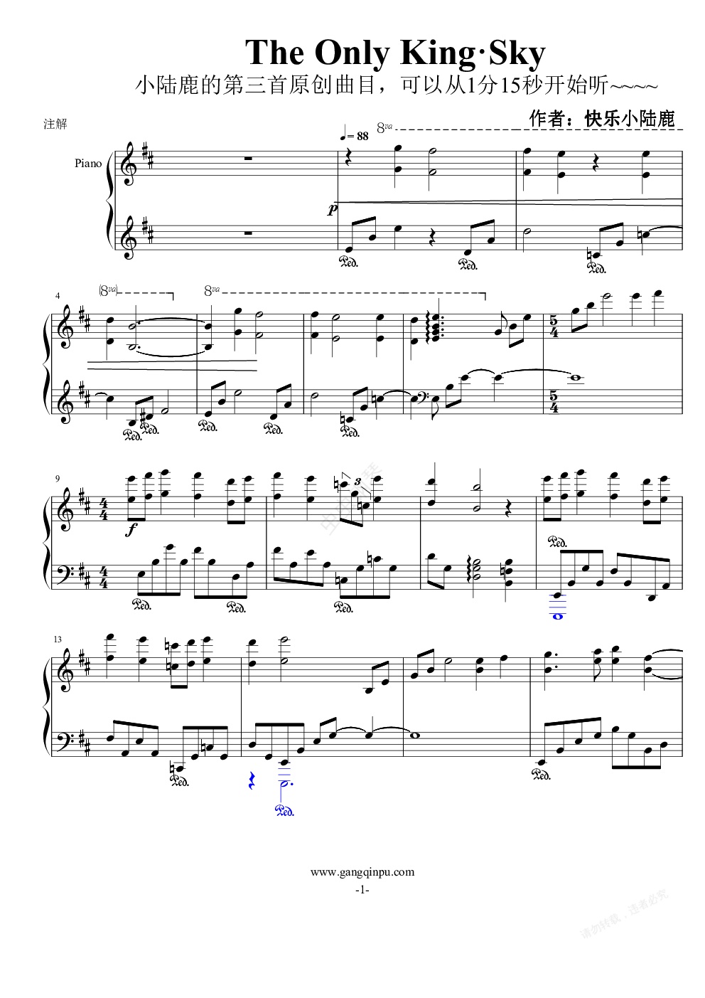 钢琴谱:The Only King·Sky