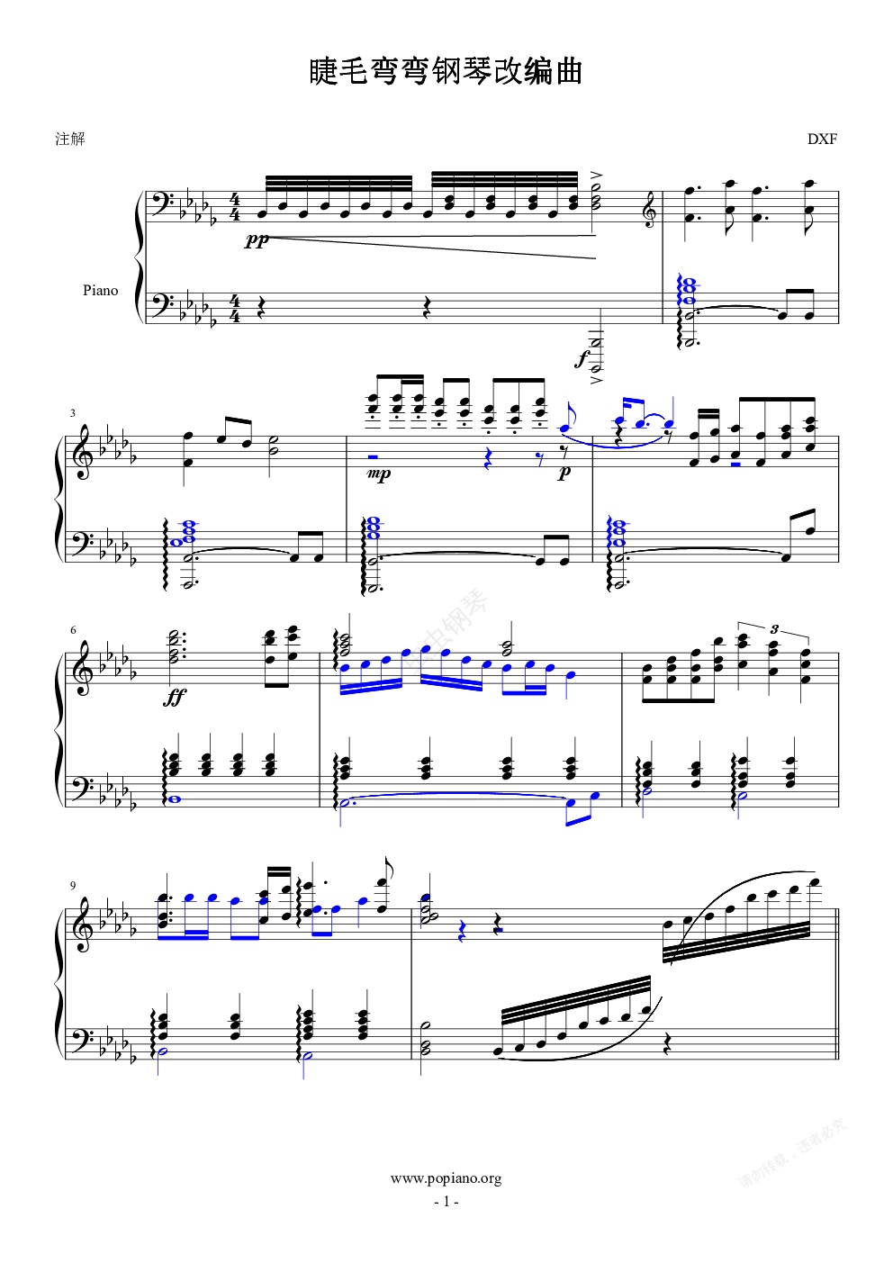 钢琴谱:睫毛弯弯钢琴改编曲(献给心凌姐)