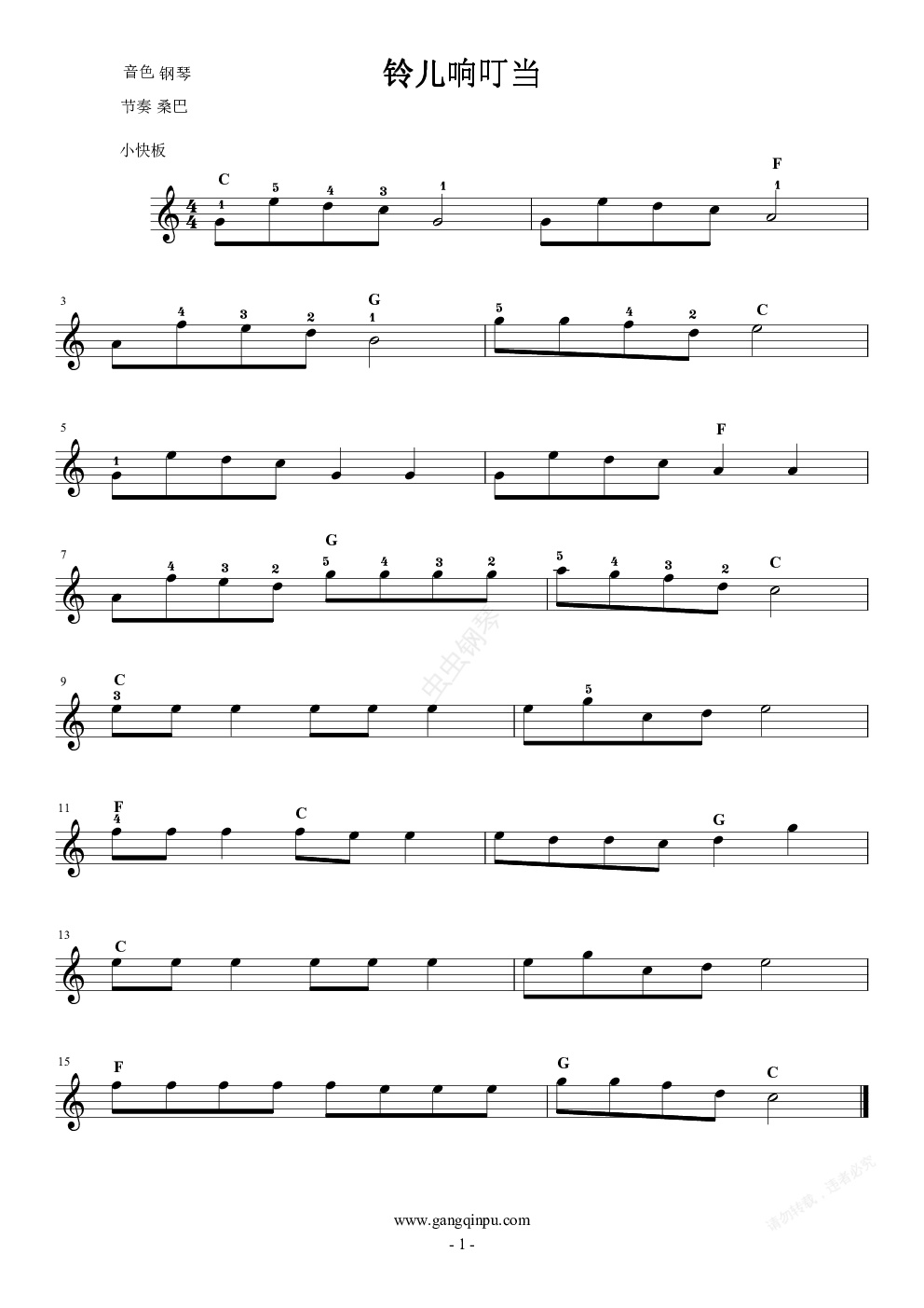 钢琴谱:铃儿响叮当 少儿电子琴版
