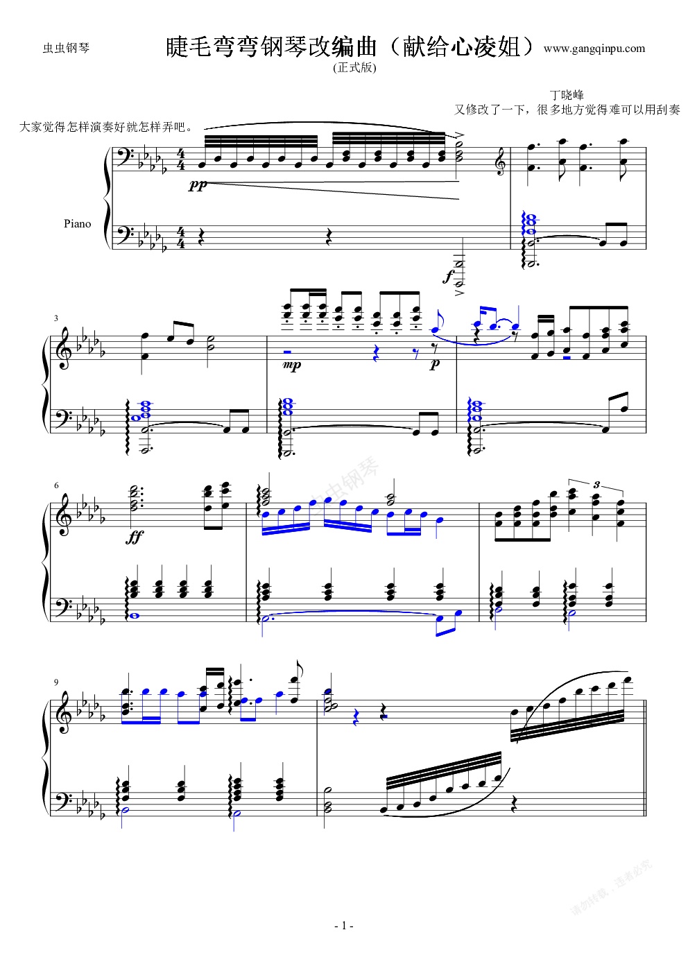 钢琴谱:睫毛弯弯钢琴改编正式版