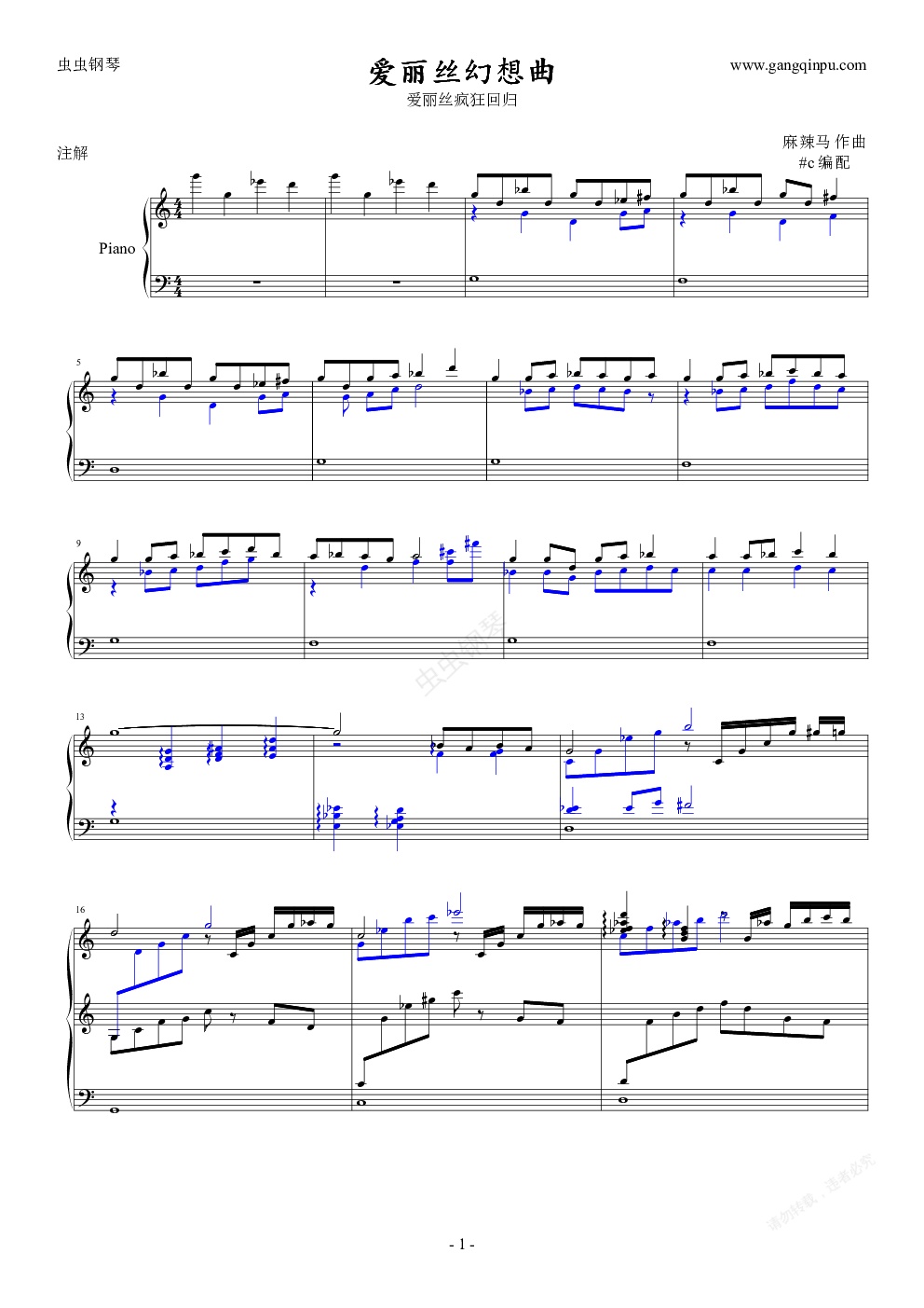 《爱丽丝疯狂回归》游戏音乐的改编曲,这个游戏的音乐相当不错,有很多复杂的主题和变奏,战斗音乐更是突出,但编配属于抽时间编出来的没花太多时间音效略粗糙,不过还是可以听的,改编成分比较多,使用了片头动画、主题、东方以及娃娃房的主题,成品算是有点叙事性质。曲子有些地方比较难但是可以弹的,不过得用不传统的压键方法