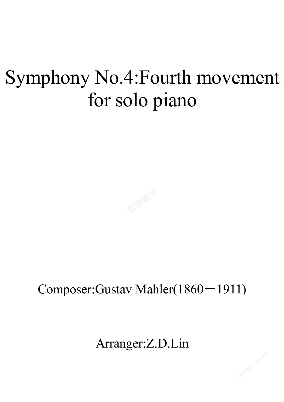 钢琴谱:马勒第四交响曲第四乐章钢琴独奏