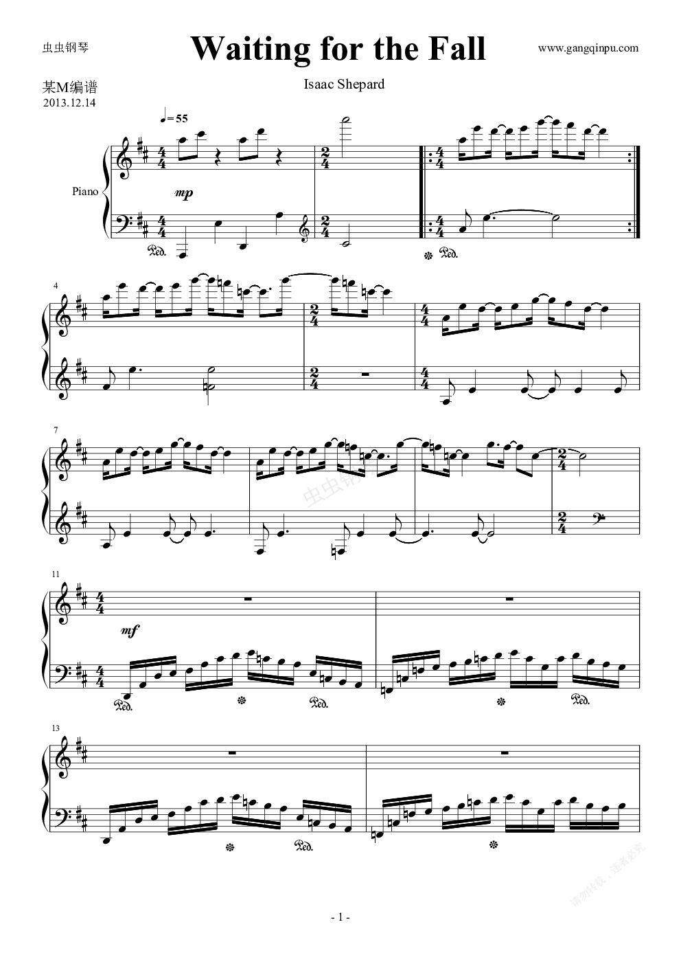 钢琴谱:Waiting for the Fall