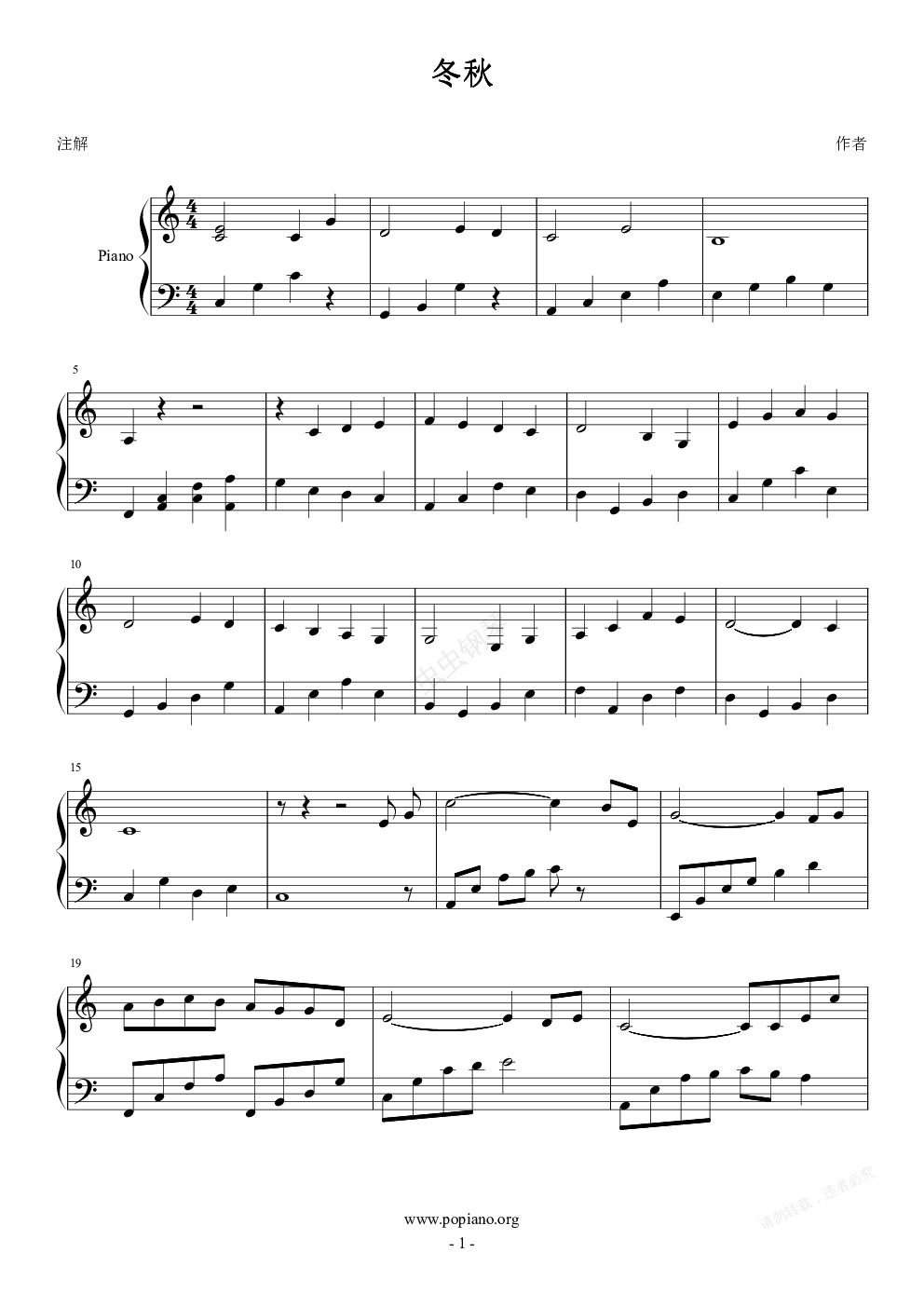 钢琴谱:冬秋