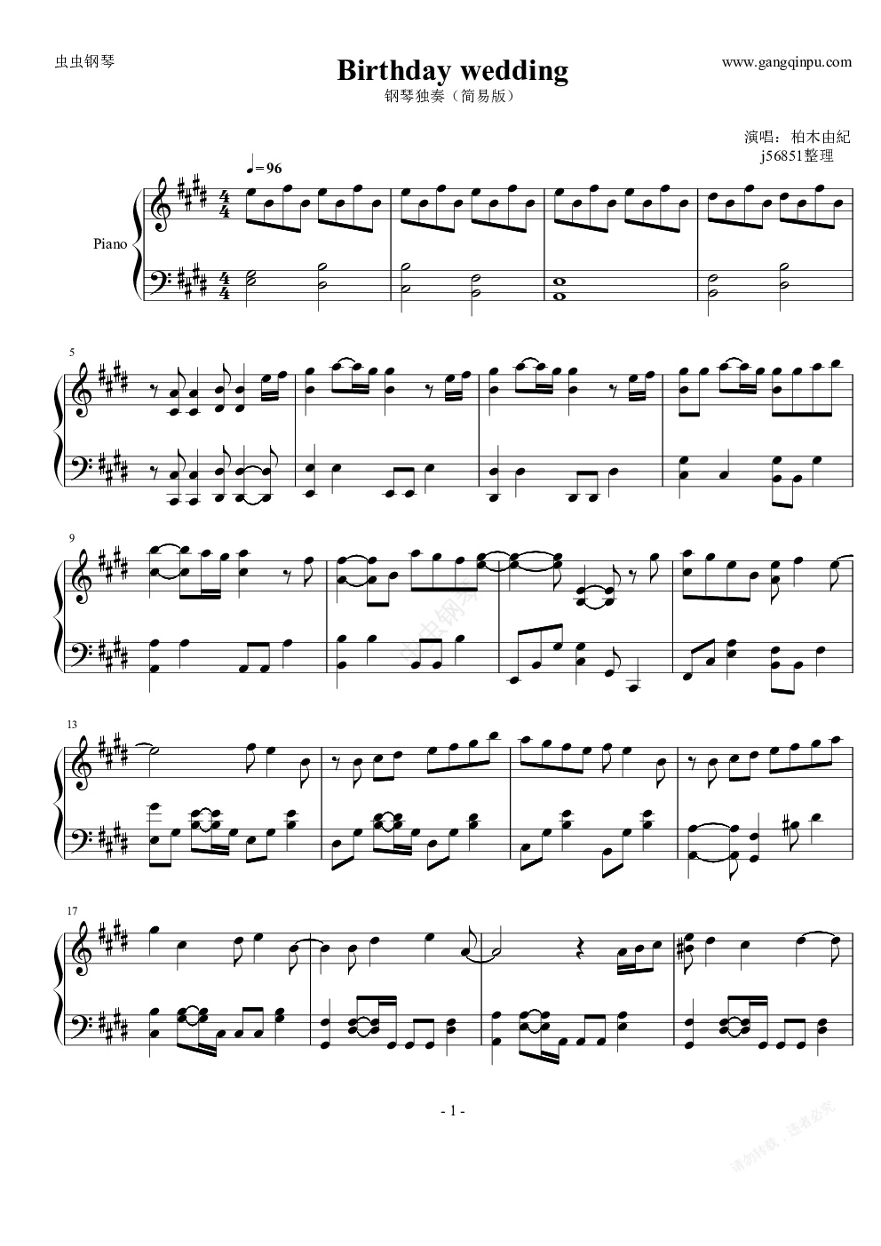 钢琴谱:Birthday wedding 简易版(建议下载另一版本)
