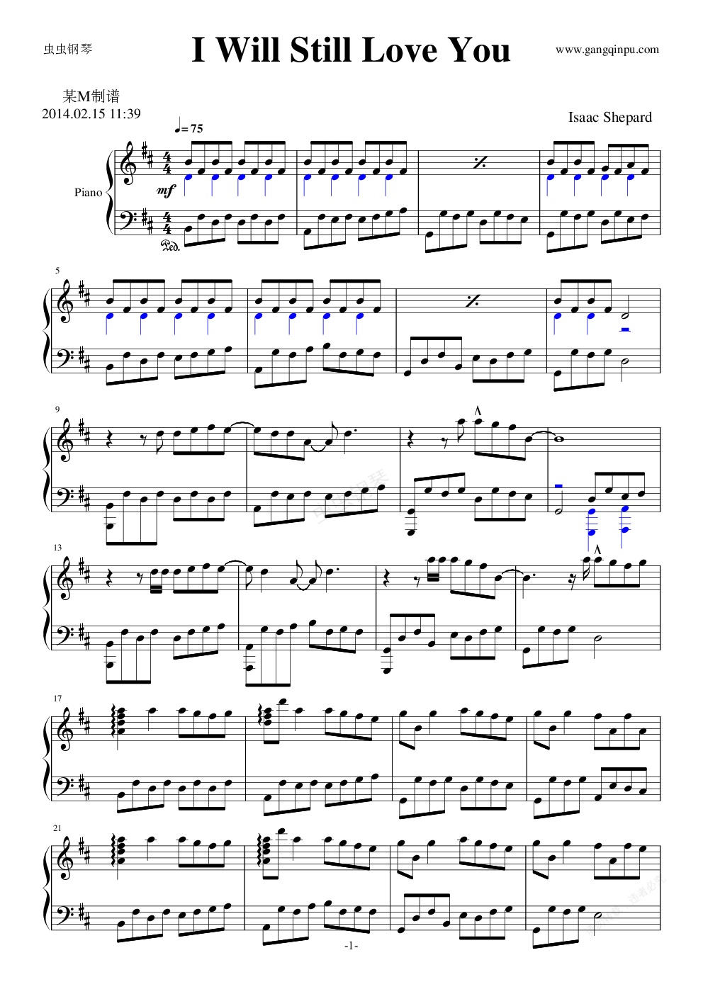 钢琴谱:I Will Still Love You