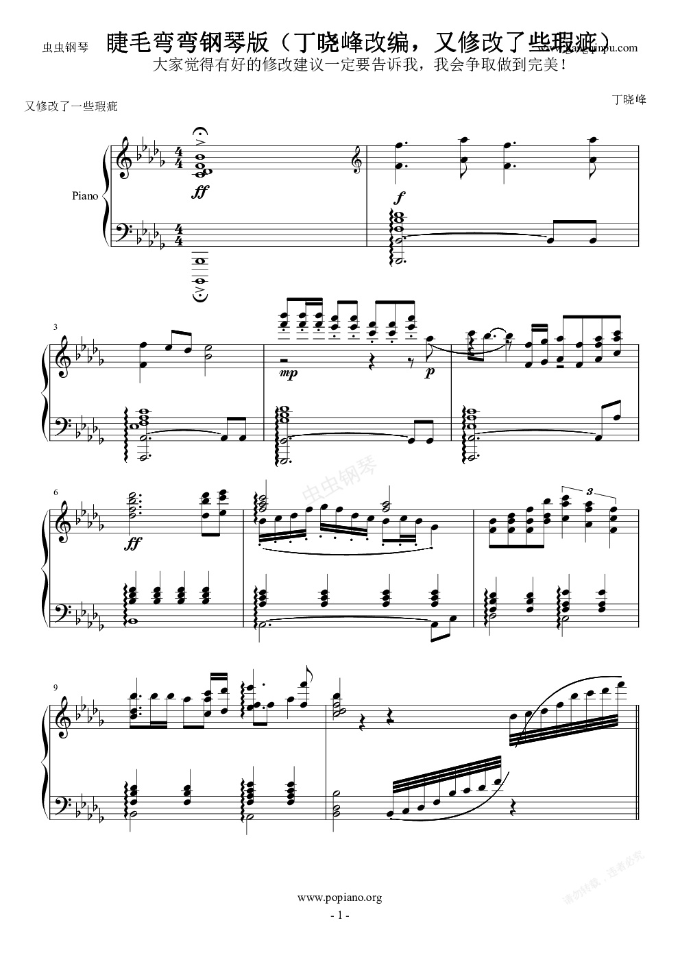 钢琴谱:睫毛弯弯钢琴改编