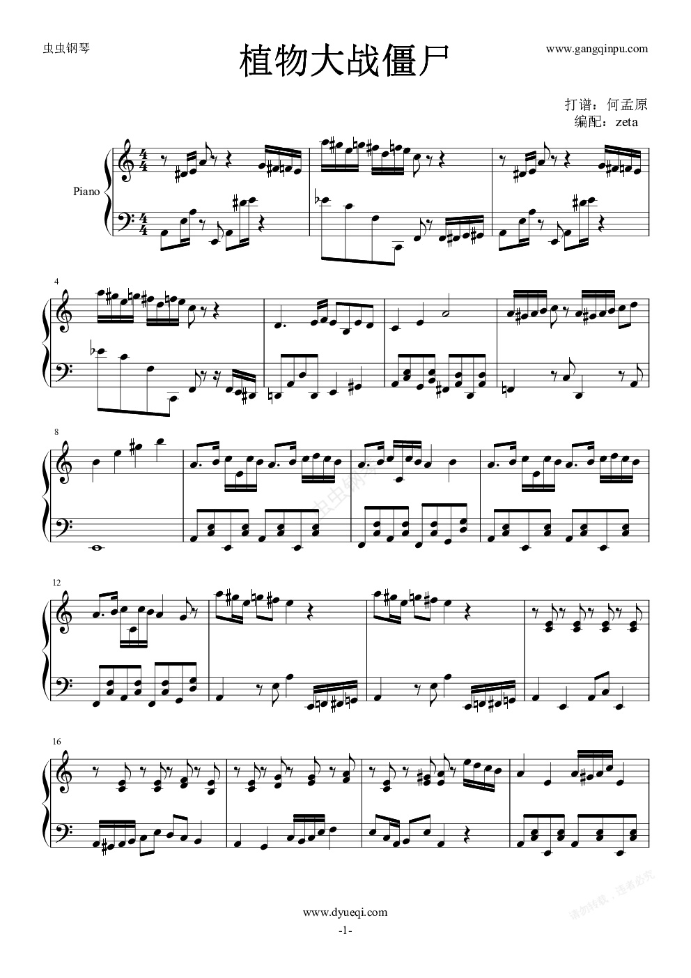 钢琴谱:植物大战僵尸