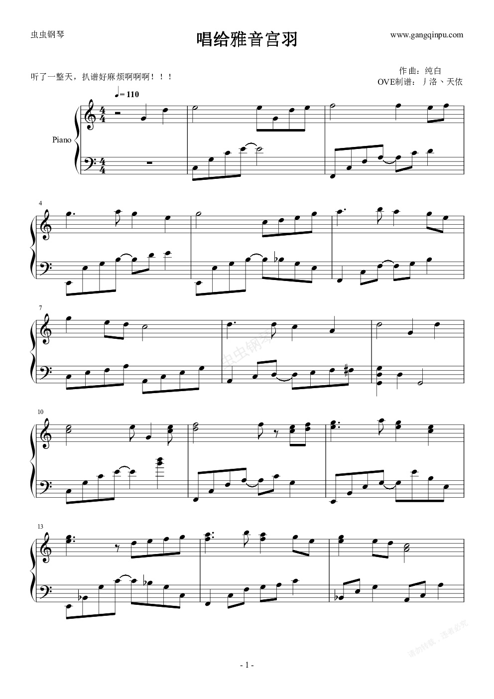钢琴谱:唱给雅音宫羽