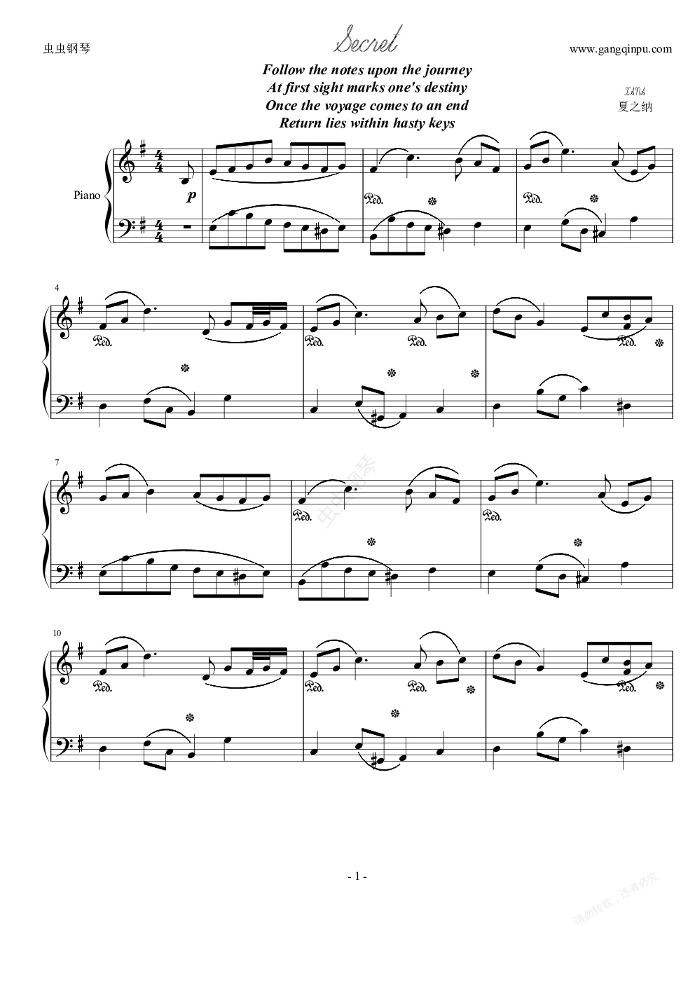 钢琴谱:不能说的秘密-secret(快板)权威经典