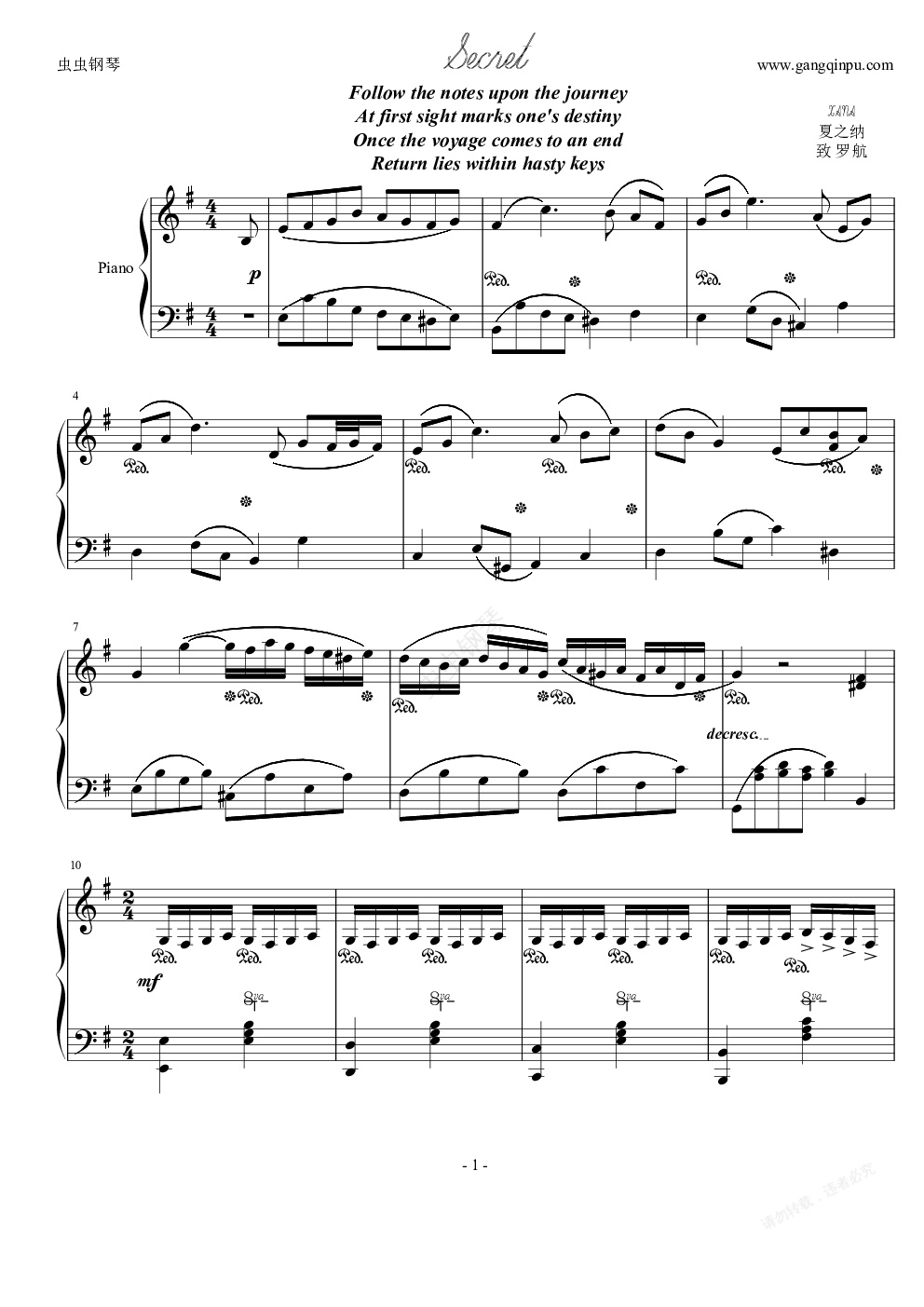 钢琴谱:不能说的秘密-secret(慢板)权威经典