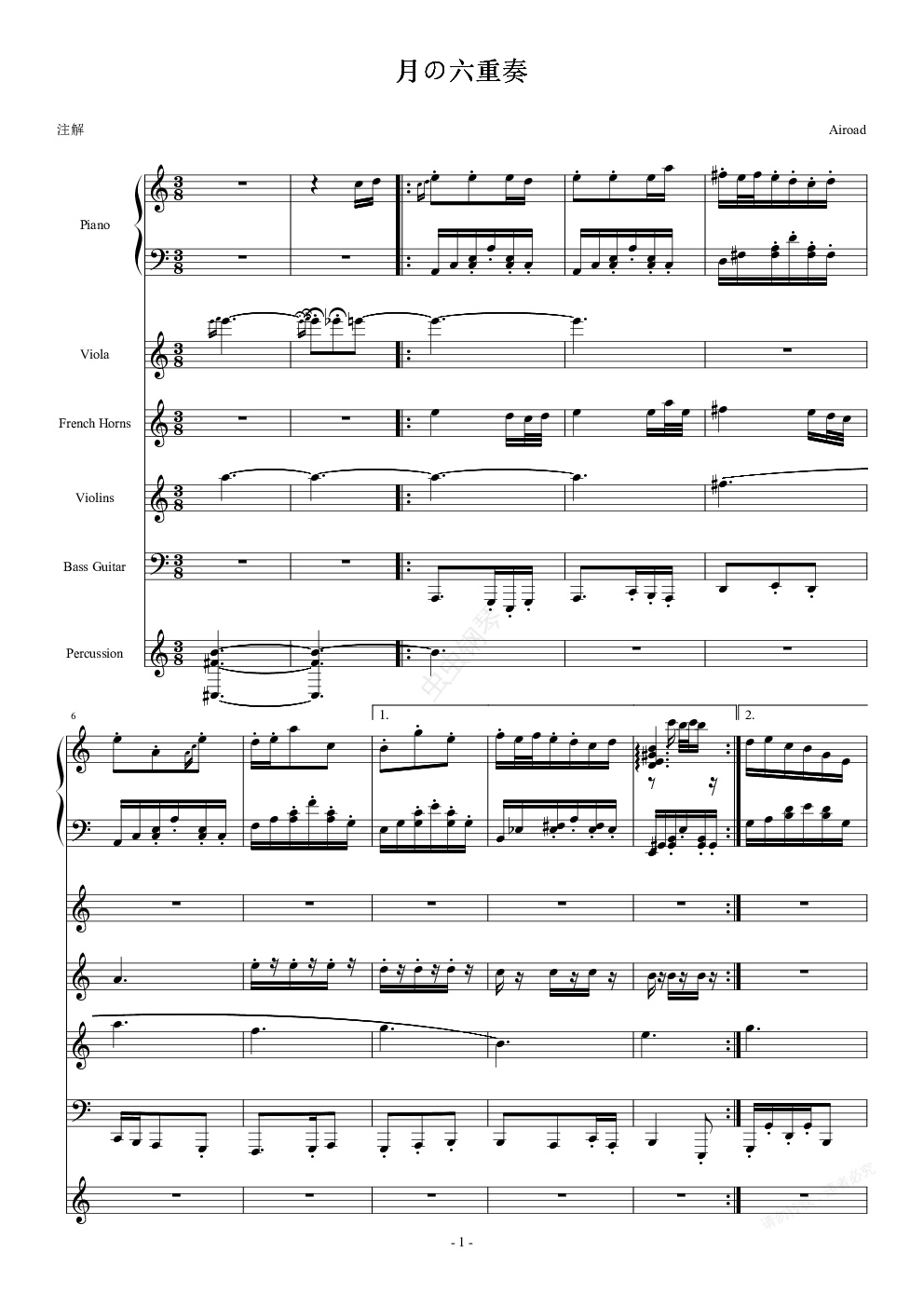 钢琴谱:月の六重奏(A弦)