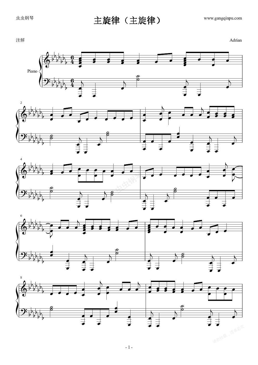 钢琴谱:主旋律(后半部分主旋律)