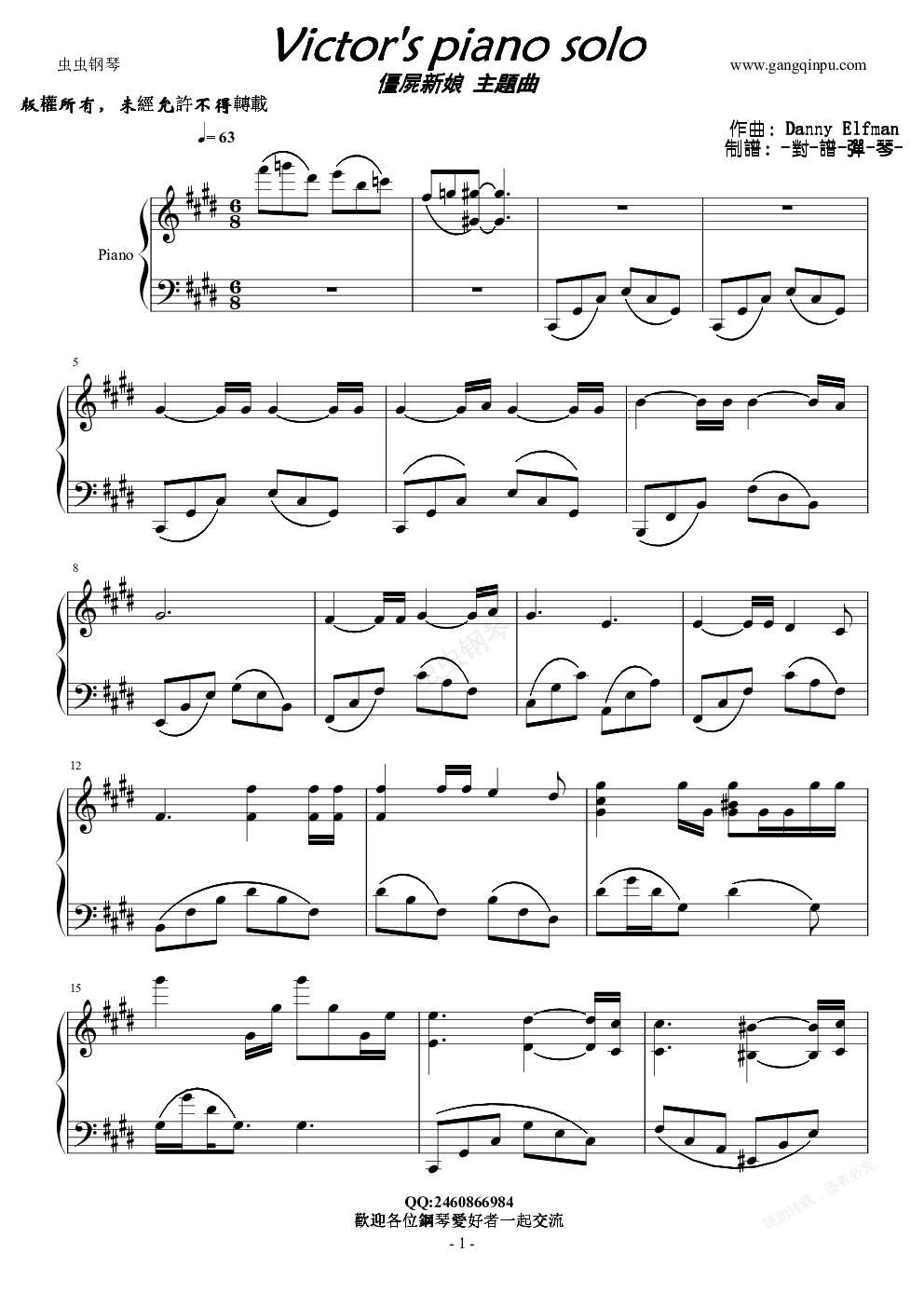 钢琴谱:Victors piano solo 钢琴版 僵尸新娘 主题曲 -對-譜-彈-琴-