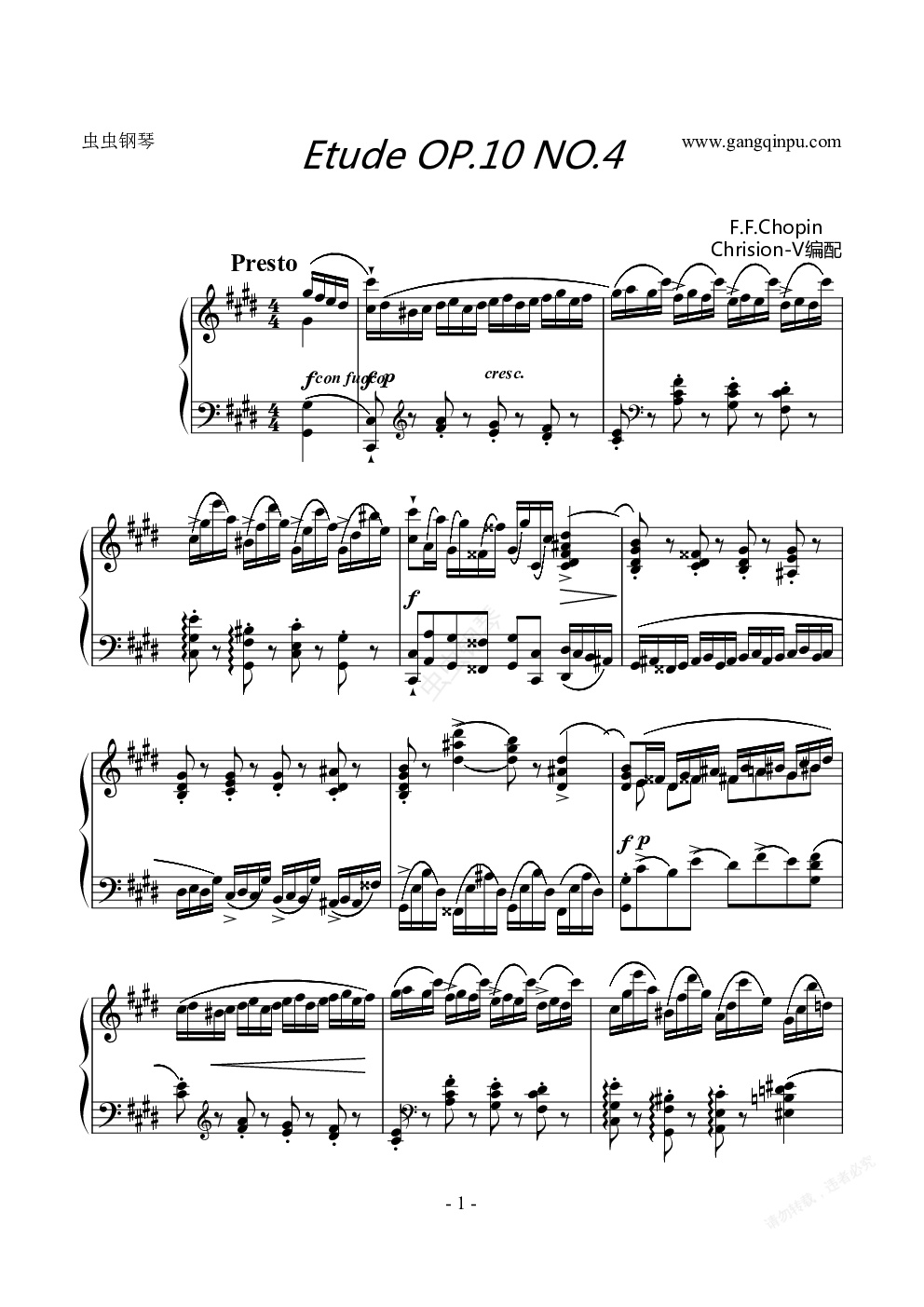 钢琴谱:肖邦练习曲-Etude OP.10 NO.4