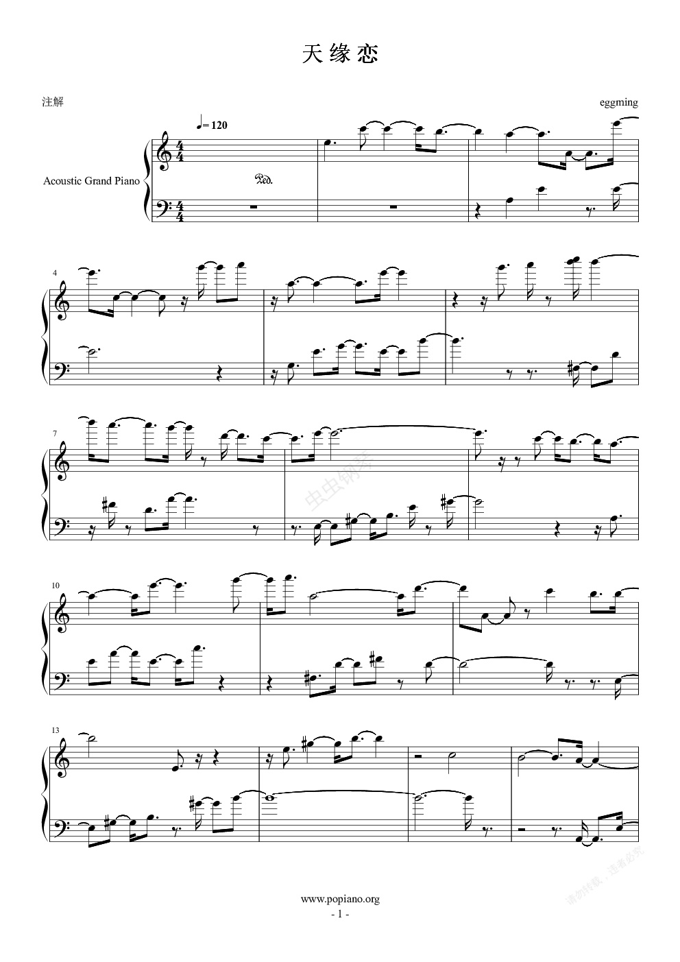 钢琴谱:天缘恋