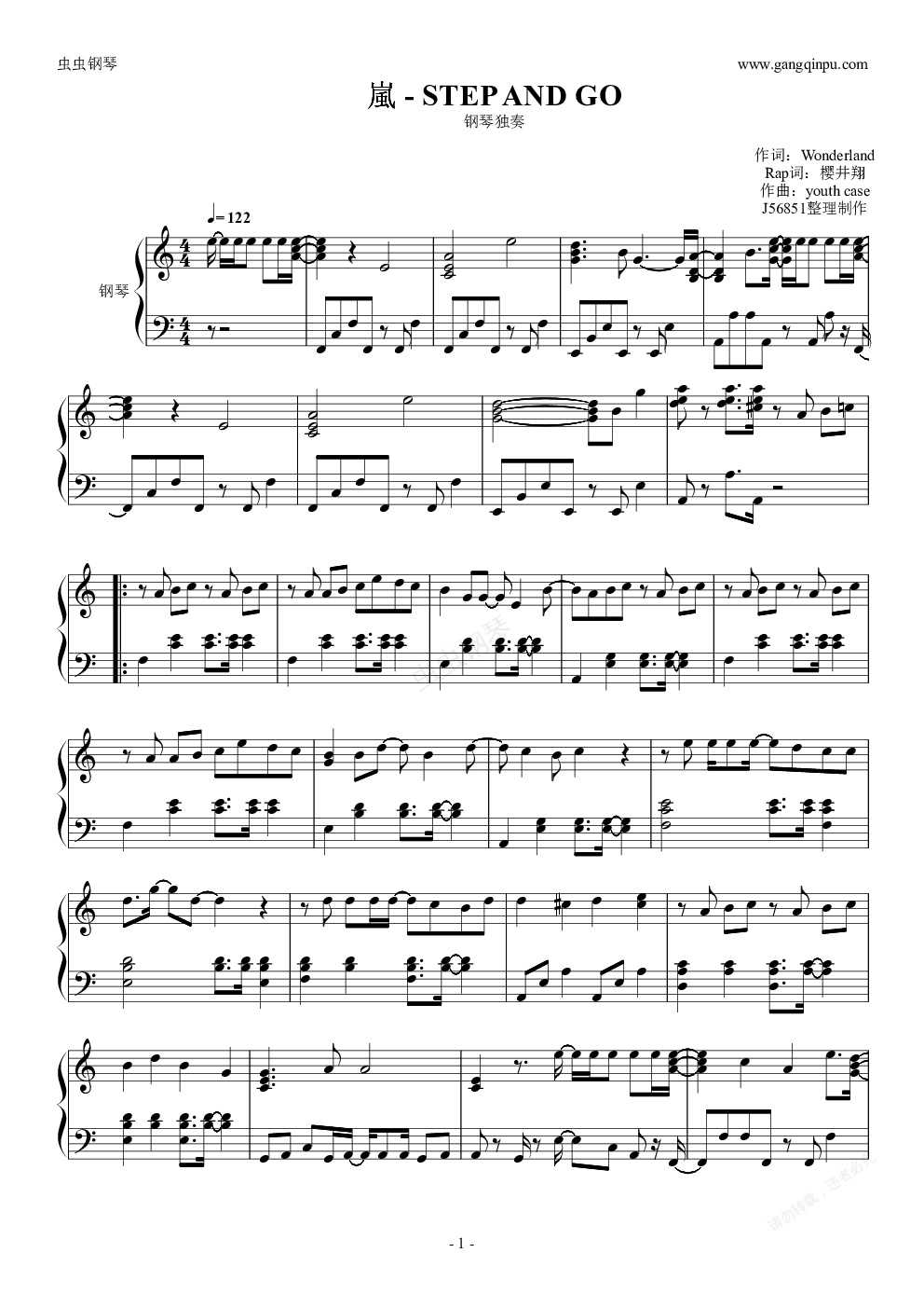 钢琴谱:嵐 - Step and Go