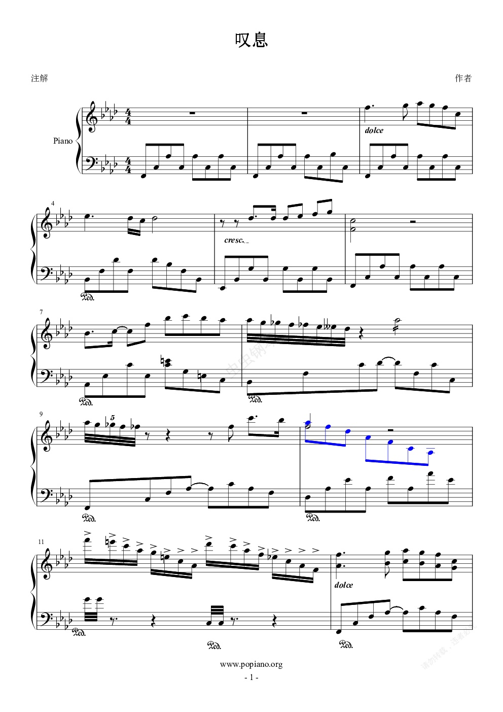 钢琴谱:叹息