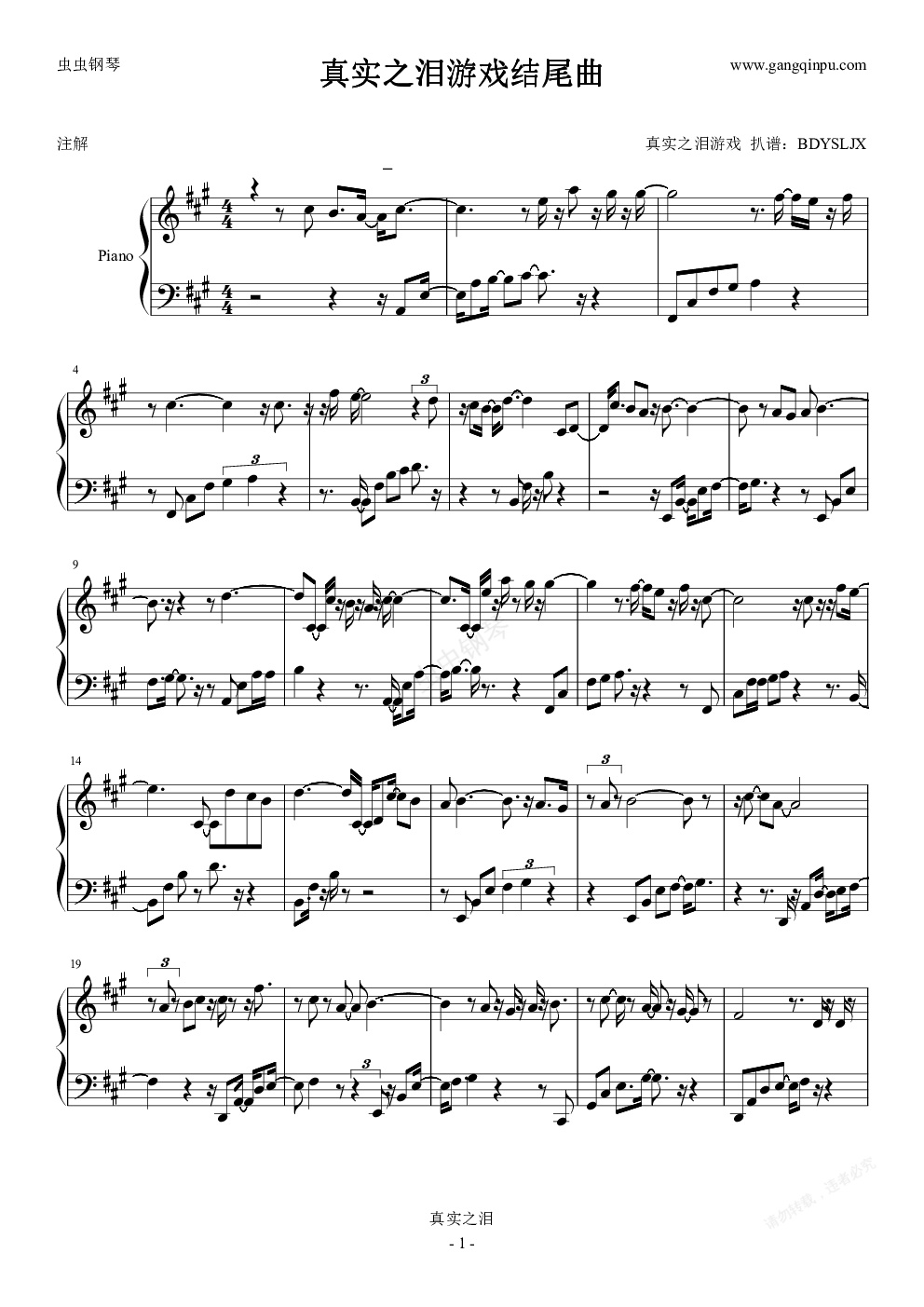 钢琴谱:真实之泪游戏结尾曲